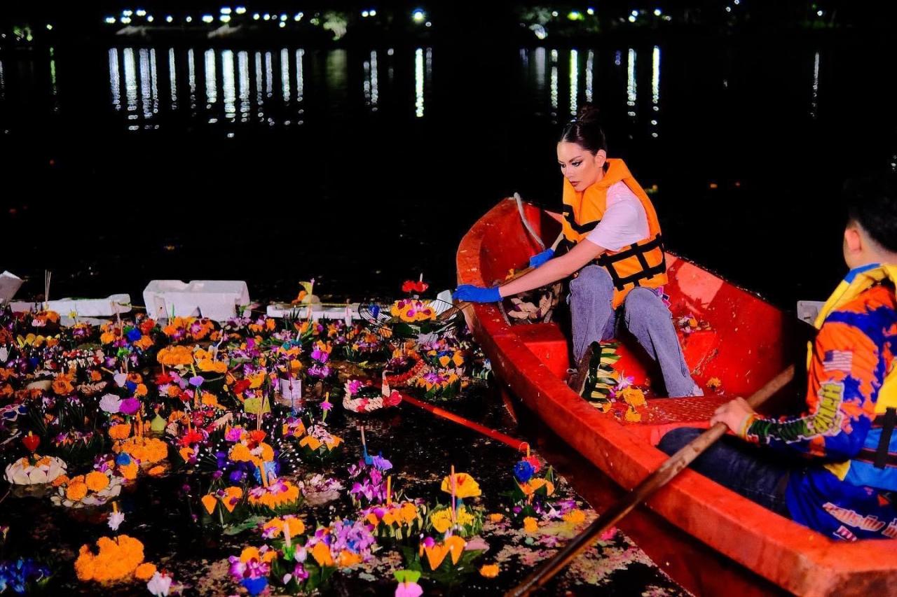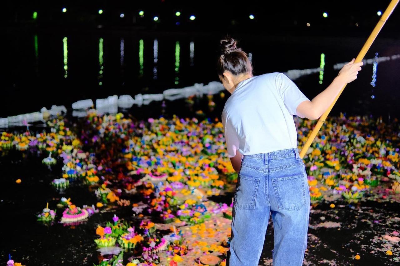 โดยเมื่อช่วงดึกที่ผ่านมา ได้ออกมาช่วยพี่ๆ ฝ่ายรักษาความสะอาด เก็บและคัดแยกกระทงบางส่วน เพื่อนำไปคัดแยกและจัดเก็บ อย่างถูกวิธีต่อไป ณ สวนเบญจกิติ" ท่ามกลางแฟนนางงามที่เข้ามาชื่นชมกันอย่างล้นหลาม.