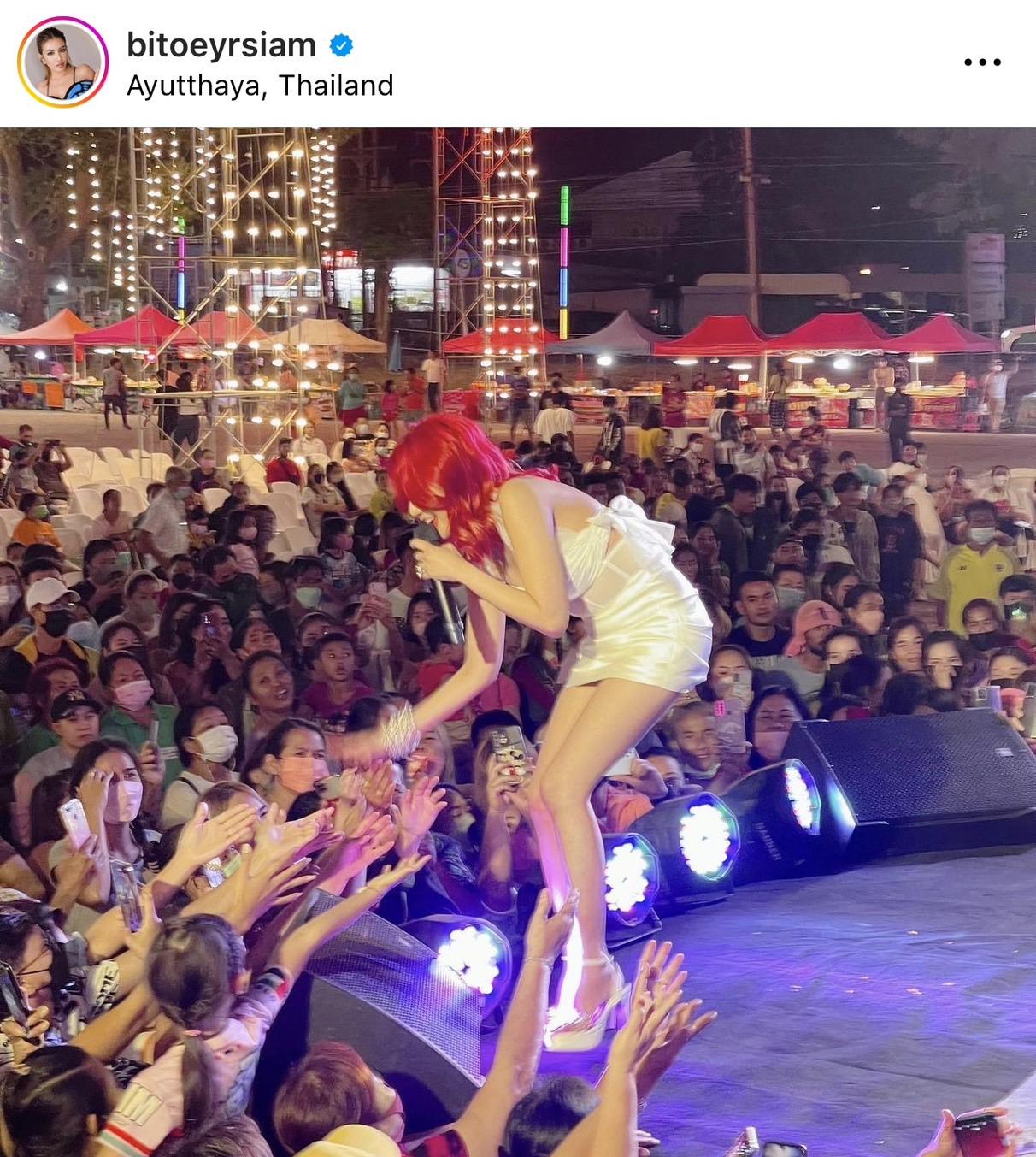 ซึ่งสาว ใบเตย ได้โพสต์ภาพตนเองในลุคใหม่ พร้อมระบุแคปชั่นว่า "Thank You Ayutthaya" ต่อด้วยโพสต์คลิปเต้นสะบัดตอนแสดงคอนเสิร์ต กับแฮชแท็ก "#BT2022ComebackStage" ท่ามกลางแฟนคลับที่เข้ามาให้กำลังใจ และแสดงความยินดีกันอย่างมาก.