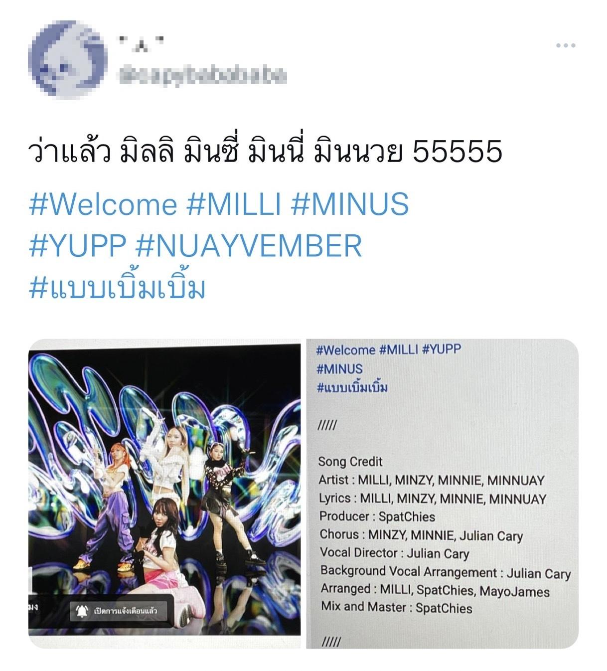 หลังจากก่อนหน้านี้ MILLI (มิลลิ ดนุภา) แร็ปเปอร์สาวสุดฮอตได้ออกมาประกาศว่าตนเองจะเดบิวต์เป็นสมาชิกเกิร์ลกรุ๊ปวง MINUS พร้อมปล่อยโปสเตอร์สมาชิกออกมา ว่าเธอได้สร้างตำนานครั้งใหม่