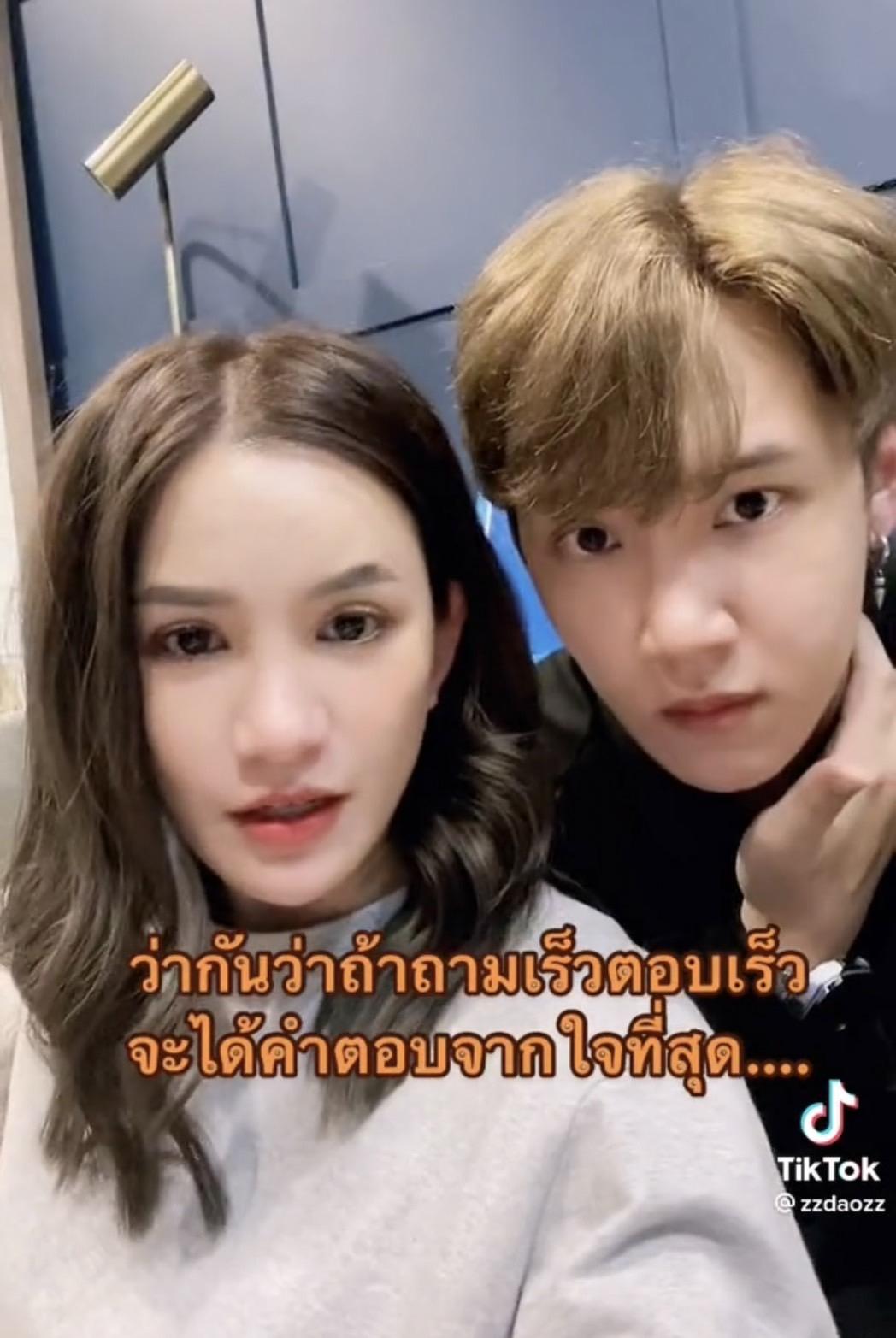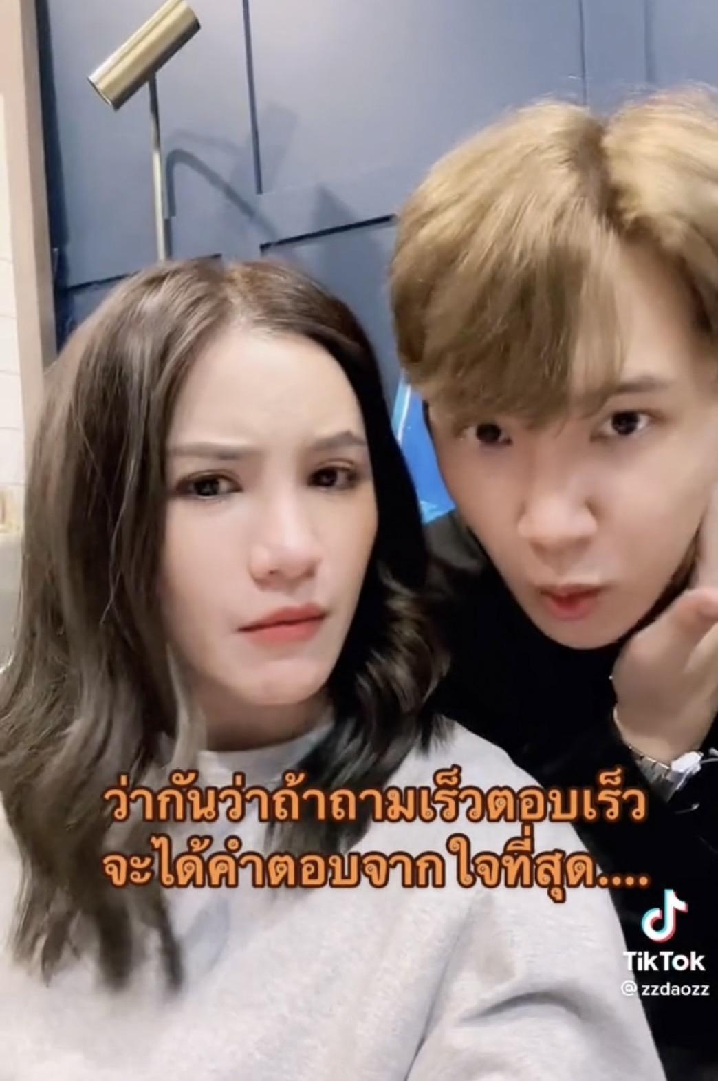 และนอกจากความหวานแล้ว ยังมักจะมีความฮามาให้ได้เห็นอยู่เสมอ อย่างล่าสุดสาว ดาว ได้อัดคลิปใน TikTok พร้อมตั้งคำถามกับ แกงส้มว่า "ทำไมเราสองคนถึงคบกันได้นาน"