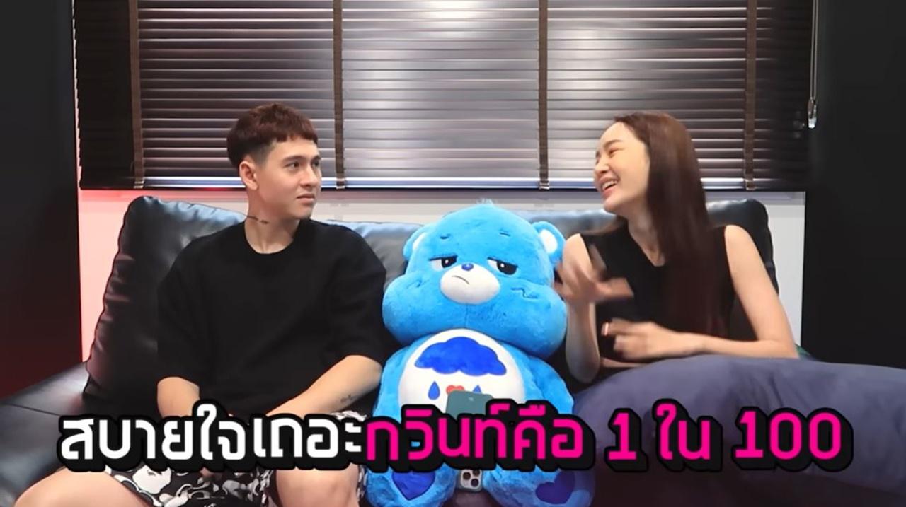 จากนั้นกวินท์ก็ขอเล่าบ้างว่าเห็นปุ้ยครั้งแรกในอินสตาแกรมแล้วรู้สึกว่านี่คือแม่ของลูก วันที่ชวนปุ้ยไปเที่ยวก็คิดว่าคนนี้แหละที่จะเอามาเป็นเมีย การกระทำมันจะแตกต่าง จะไม่เร่าร้อน ไม่ดึงผม ไม่ขี่ม้า มันจะเกรงใจเขา งานนี้ปุ้มปุ้ยถึงกับรีบบอกว่า อย่าเกรงใจ