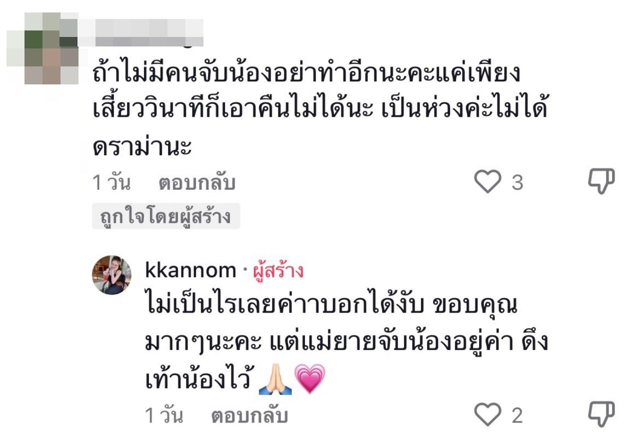 งานนี้ ขนม ภรรยา ครูเต้ย ไม่ปล่อยให้เรื่องนี้มีดราม่านาน เพราะเจ้าตัวได้ออกมาชี้แจงสยบดราม่าทันที พร้อมขอบคุณทุกคนที่เป็นห่วงลูกสาวว่า “ขอบคุณที่เป็นห่วงน้องนะคะ แม่ยายกับหม่ามี้คอยดูจับอยู่ตลอดค่ะ ให้น้องนั่งถ่ายรูปกับพี่ๆอีกคนแปปเดียวค่ะ ในคลิปดูเหมือนนาน เพราะ หม่ามี้เอาคลิปมาสโลว์ค่ะ”