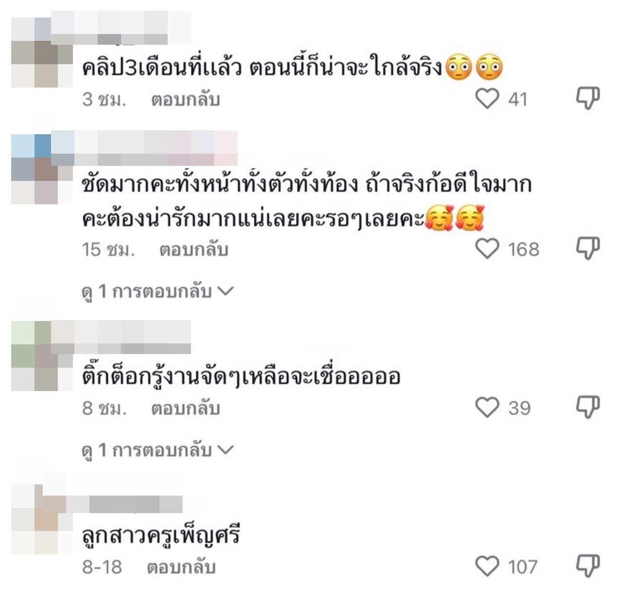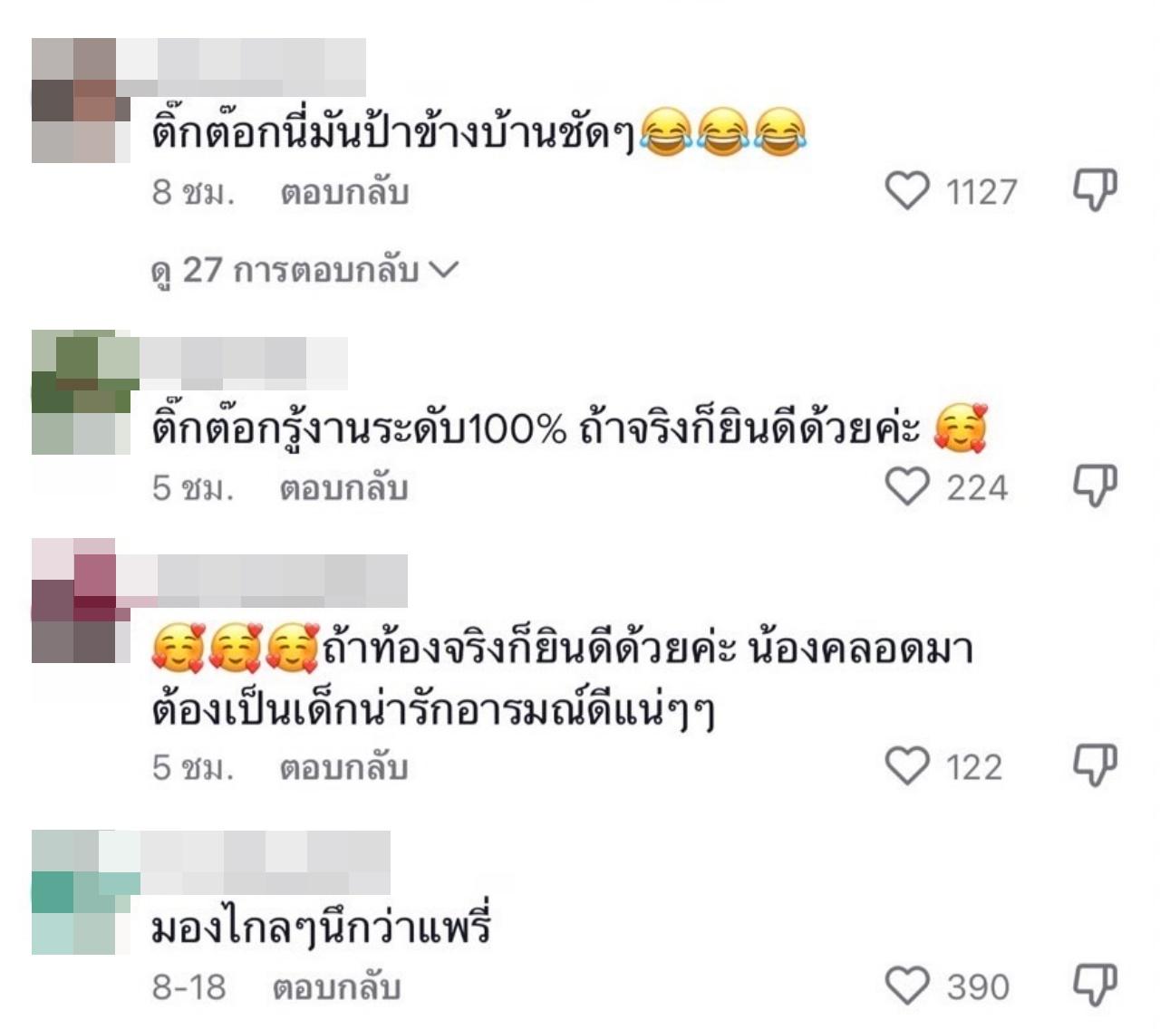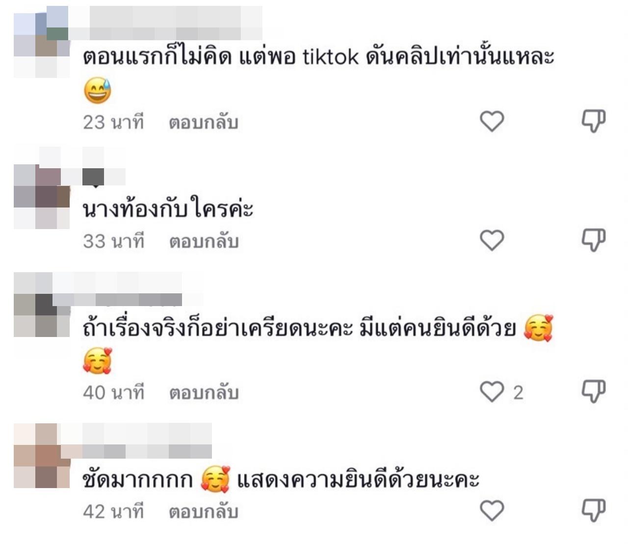 โดยในโลกติ๊กต่อก จู่ๆ ก็มีคลิปเก่าเมื่อ 3 เดือนก่อนของ ซาร่า ที่ถ่ายคลิปกับ อแมนด้า โผล่ขึ้นมาหน้าฟีด งานนี้ก็มีชาวเน็ตเข้าไปคอมเมนต์แสดงความคิดเห็นในคลิปนี้อย่างมากมายว่า "ตอนแรกก็ไม่คิด แต่พอ tiktok ดันคลิปเท่านั้นแหละ, ถ้าเรื่องจริงก็อย่าเครียดนะคะ มีแต่คนยินดีด้วย, ชัดมากกก แสดงความยินดีด้วยนะคะ, น่าจะท้องจริงนะคะ, ชัดมากค่ะทั้งหน้าทั้งตัวทั้งท้อง ถ้าจริงก็ดีใจมากคะต้องน่ารักมากแน่เลยค่ะ รอๆ เลยคะ"