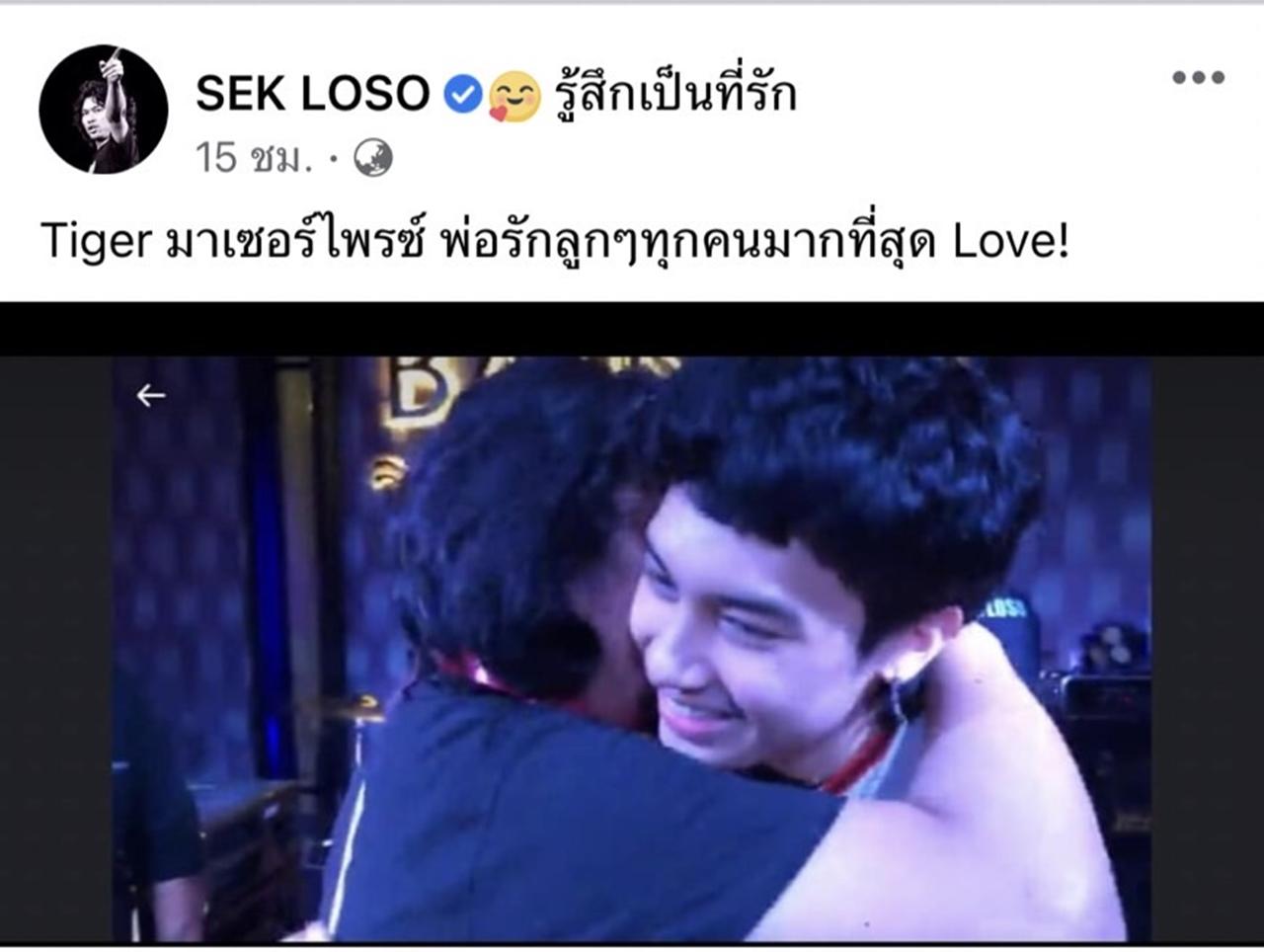โดยในแฟนเพจ SEK LOSO ได้โพสต์ภาพสุดซึ้งของ 2 พ่อลูกที่กอดกันกลม พร้อมกับเขียนแคปชั่นว่า "Tiger มาเซอร์ไพรซ์ พ่อรักลูกๆทุกคนมากที่สุด Love!"