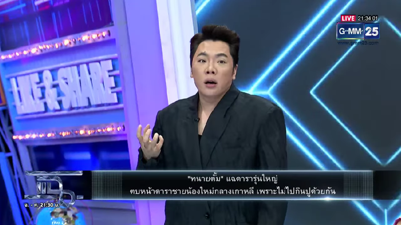 หลังจากที่ ทนายตั้ม ษิทรา ได้เผยข้อมูลในกรณีที่ นักแสดงรุ่นใหญ่ตบหน้าดาราชายน้องใหม่ที่เกาหลี เพราะไม่ยอมไปกินปูด้วย และดาราหนุ่มได้เข้าแจ้งความที่เกาหลีเรียบร้อยแล้ว จากประเด็นนี้ทำให้หลายคนโยงไปถึง ม้า อรนภา