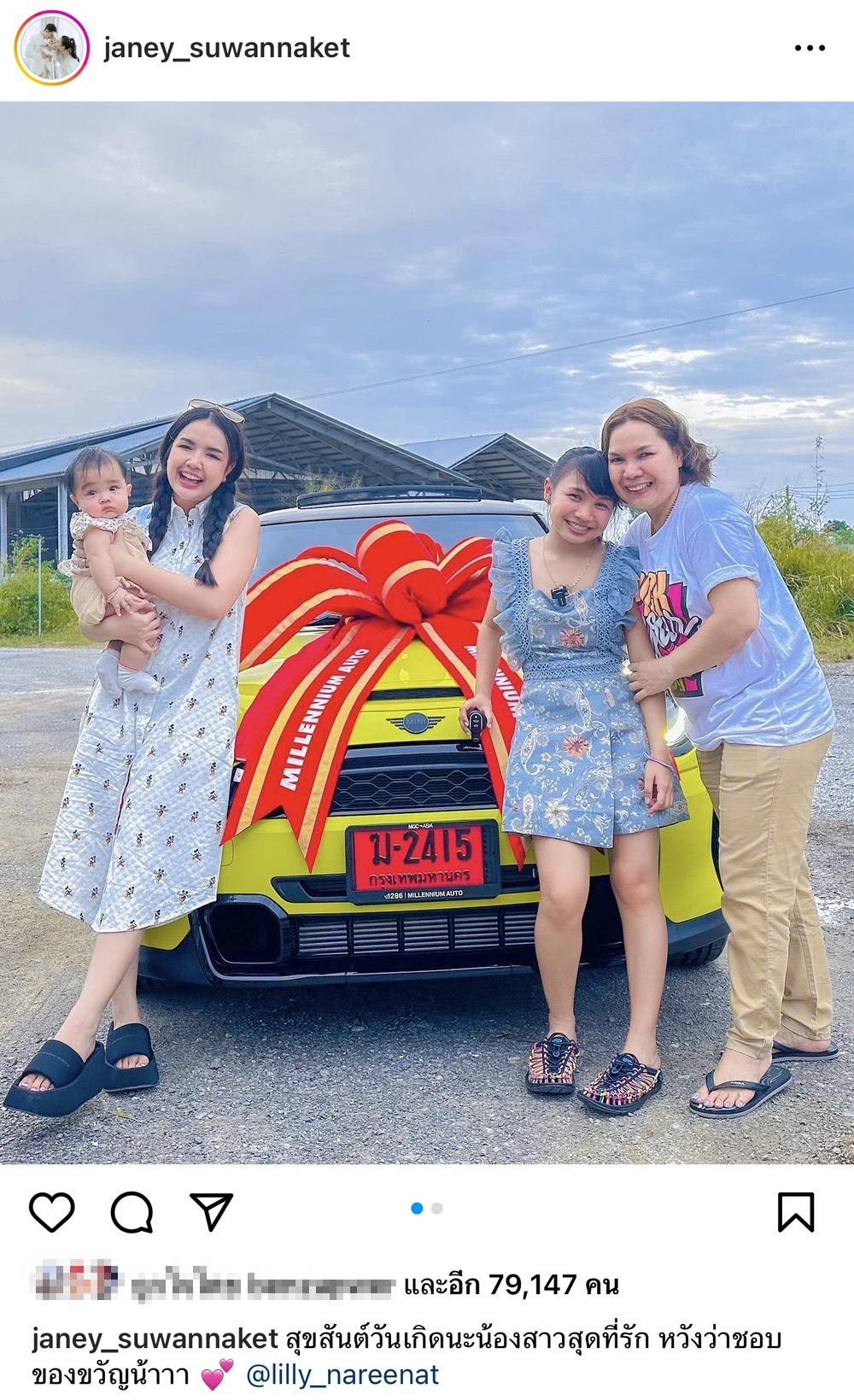 เจนนี่ : เป็นสิ่งที่ลิลลี่ควรจะได้ เหมาะสมกับเวลา อายุ 18 ปี ทำใบขับขี่ได้ พอทำได้ก็ขับได้ตามกฎหมาย ลิลลี่เป็นเด็กที่เหนื่อยมาก แต่ไม่อยากได้อะไรที่มันเกินตัว เค้าพูดมา 3 ปีแล้วอยากมีมินิคูเปอร์ ทั้งๆ ที่เงินเค้ามันถึงแล้ว เค้าก็คิดแล้วคิดอีก เราก็คิด 2 คน แม่วันเกิดปีนี้ไปเลือกสี ทำเซอร์ไพรส์ ให้ปุ๊บก็ไลฟ์สดสนุกสนานตามพี่น้อง