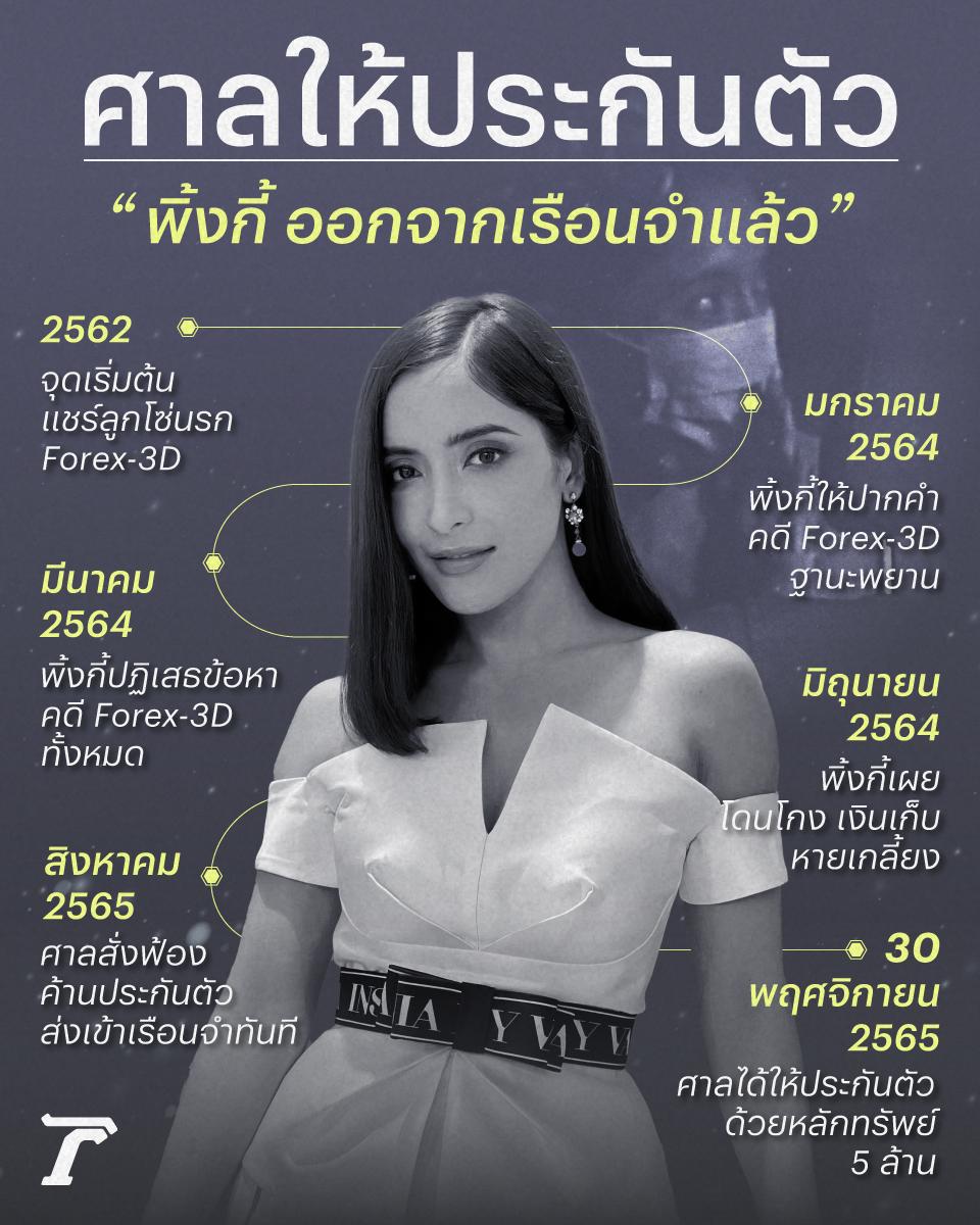 ในที่สุดศาลได้ให้ประกันตัว นักแสดงสาว พิ้งกี้ สาวิกา ไชยเดช จำเลยที่ 7 ในคดีแชร์ Forex-3D ทนายยื่นแคชเชียร์เช็ค 5 ล้านเป็นหลักประกัน ภายใต้เงื่อนไข ห้ามเดินทางออกนอกราชอาณาจักร และให้รายงานตัวต่อศาลทุกเดือน กำหนดปล่อยตัว 19.00 น. วันนี้ (30 พ.ย. 65)