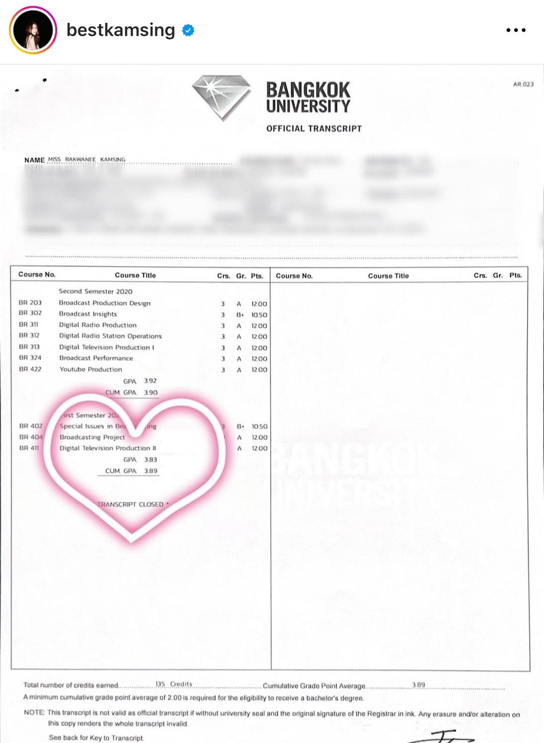 โดยสาว เบสท์ เธอประกาศข่าวดีเรื่องเรียนจบผ่านอินสตาแกรมส่วนตัว พร้อมระบุข้อความว่า "เรียนจบแล้ว!!! อีกความสำเร็จที่ขอเก็บเอาไว้ ผลการเรียนที่กว่าจะได้มา ..ขอบคุณตัวเองนะ "เบส คำสิงห์" 3 ปีครึ่ง เกียรตินิยม จะเกิดขึ้นไม่ได้ถ้าเราไม่สู้กับความตั้งใจของตัวเอง ขอบคุณที่เหนื่อยมาด้วยกัน ตั้งใจมาด้วยกันนะ (บอกตัวเองแล้วล่าสุด55555) การคุยกับตัวเองทำให้เรามีความสุขนะคะ