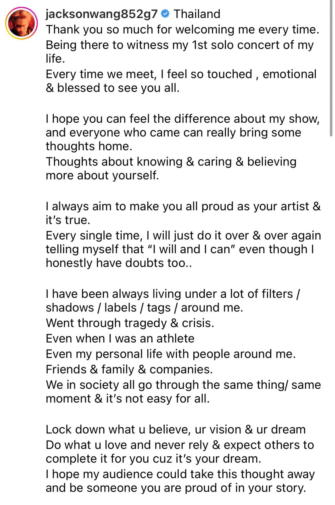ล่าสุด พี่แจ็ค ของแฟนๆ ก็ได้โพสต์ข้อความเป็นภาษาอังกฤษและภาษาไทยผ่านทางอินสตาแกรมของตัวเอง เพื่อขอบคุณทุกพลังความรักที่ส่งให้กับเขา งานนี้บอกเลยว่าทำแฟนๆ ใจฟูกันถ้วนหน้า ซึ่งมีข้อความดังนี้