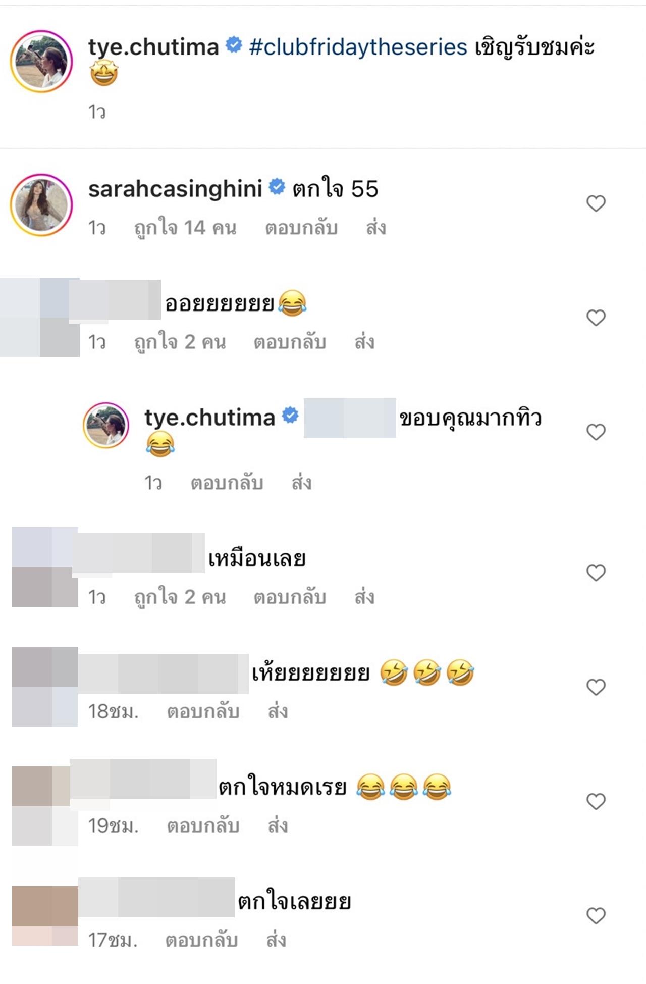ก่อนที่เจ้าตัวจะเฉลยผ่านแคปชั่นว่า "#clubfridaytheseries เชิญรับชมค่ะ" ที่แท้ก็เป็นส่วนหนึ่งของฉากในละครนั่นเอง.