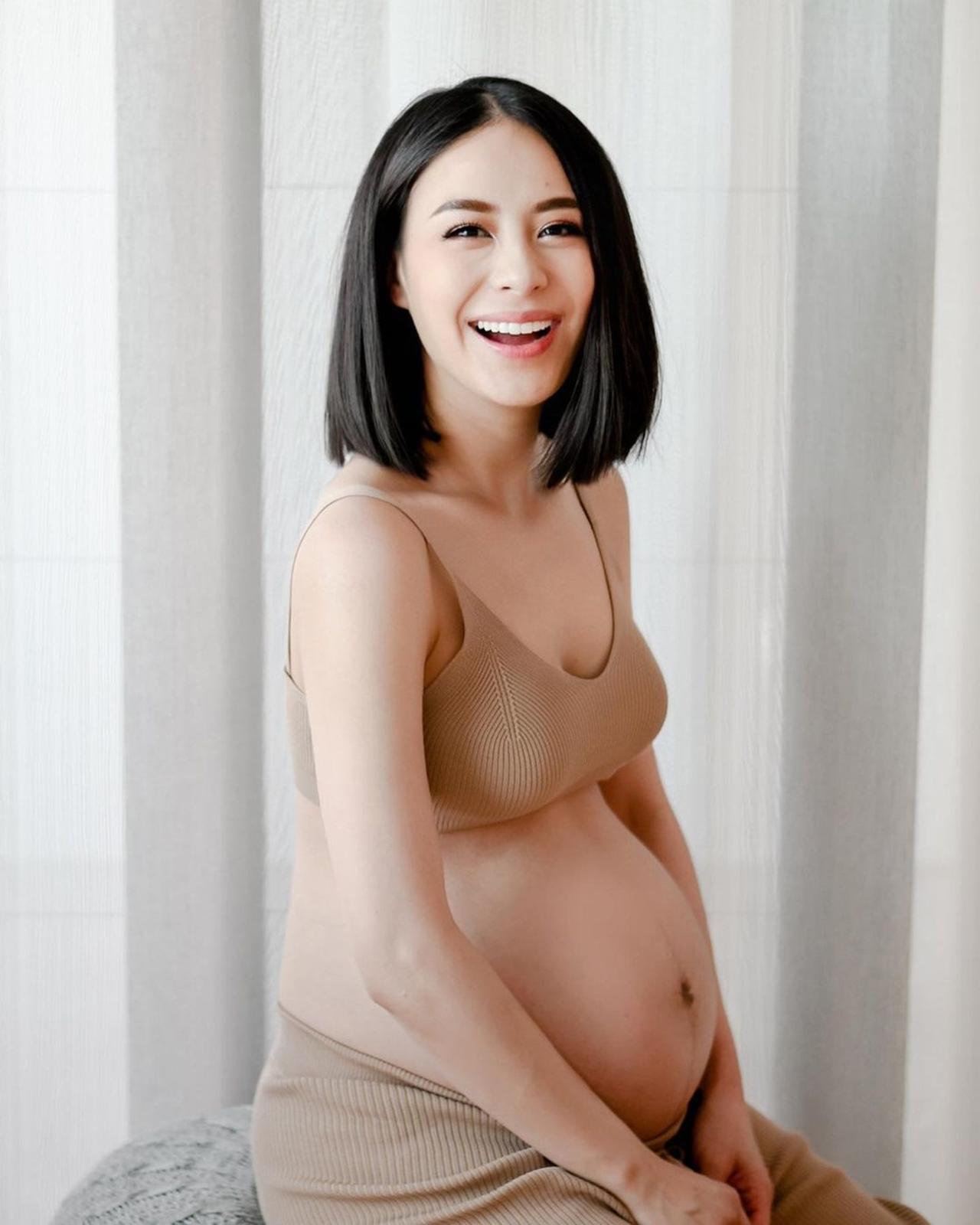 พร้อมกับบอกว่า ในระหว่างที่ตั้งครรภ์นั้นน้ำหนักขึ้นมา 10 กก. ซึ่งตื่นเต้นมากที่จะได้เจอลูกชายตัวน้อยๆ แล้ว