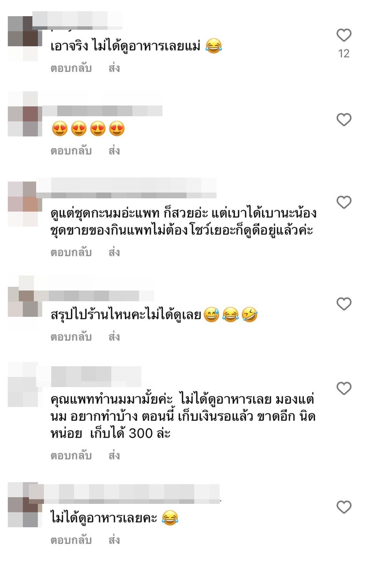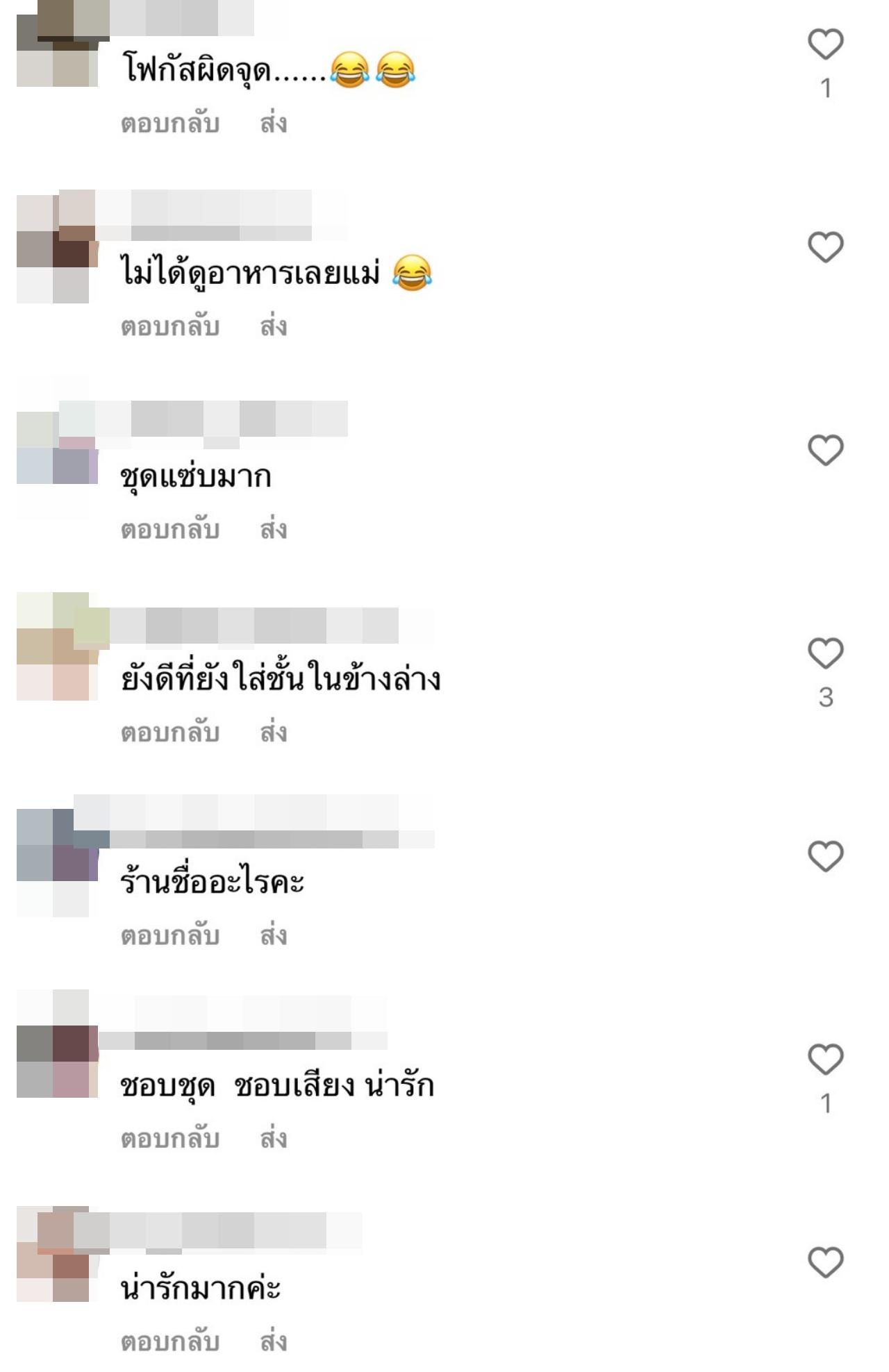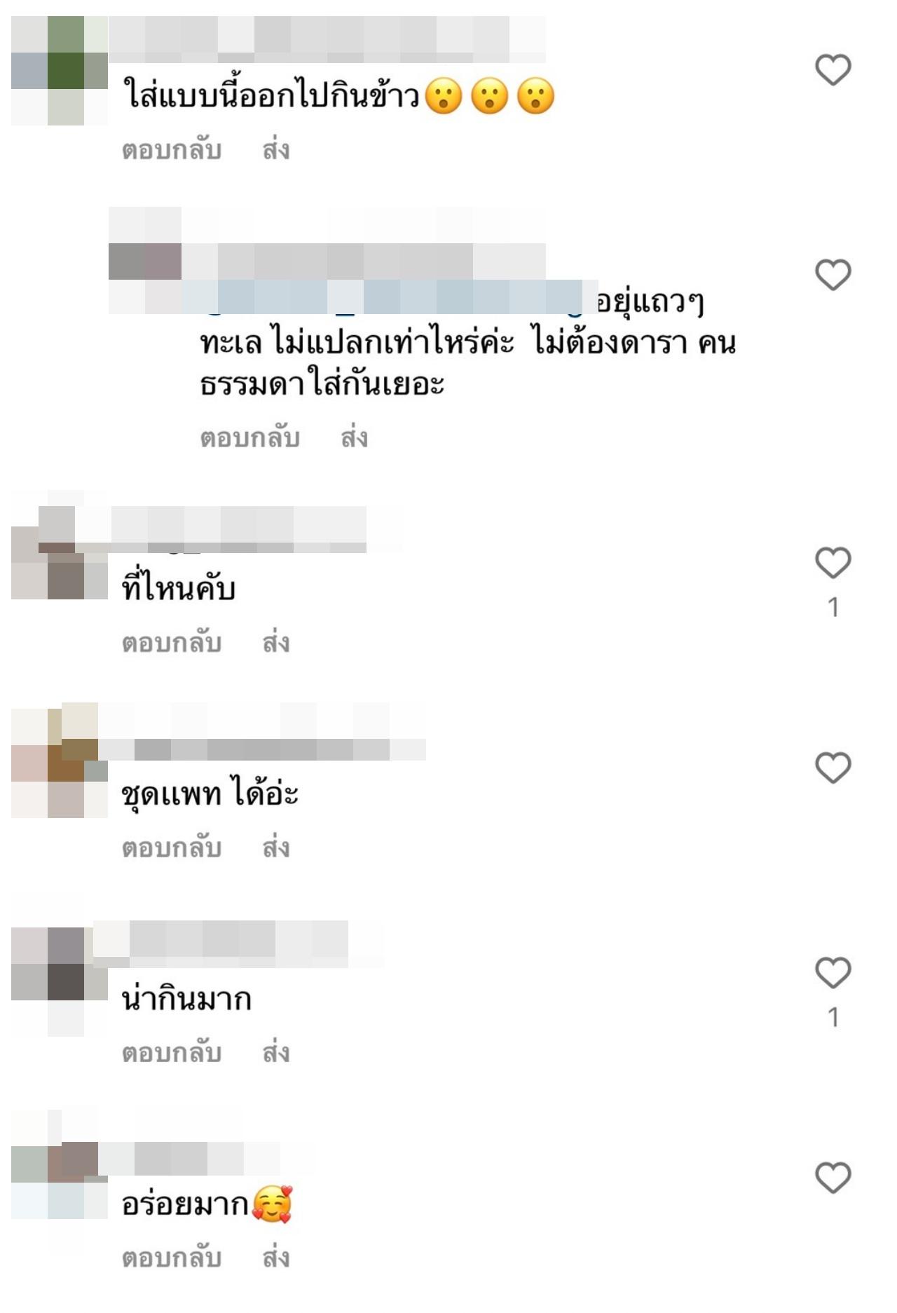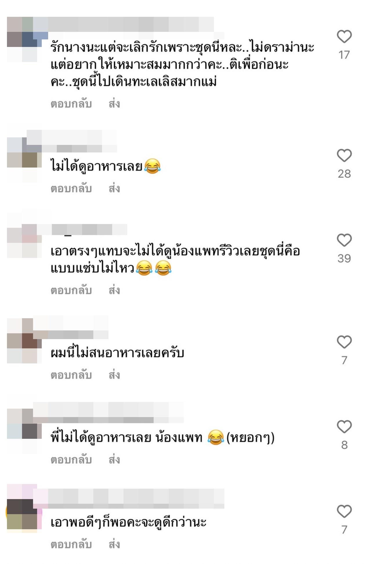 "รักนางนะ แต่จะเลิกรักเพราะชุดนี่แหละ..ไม่ดราม่านะ แต่อยากให้เหมาะสมมากกว่าค่ะ..ติเพื่อก่อนะคะ ชุดนี้ไปเดินทะเลเลิศมากแม่, ไม่ได้ดูอาหารเลย, เอาตรงๆ แทบจะไม่ได้ดูน้องแพทรีวิวเลย ชุดนี่คือแบบแซ่บไม่ไหว, เอาพอดีๆ ก็พอค่ะ จะดูดีกว่านะ, โฟกัสผิดจุด, ยังดีที่ยังใส่ชั้นในข้างล่าง, ใส่แบบนี้ออกไปกินข้าว"