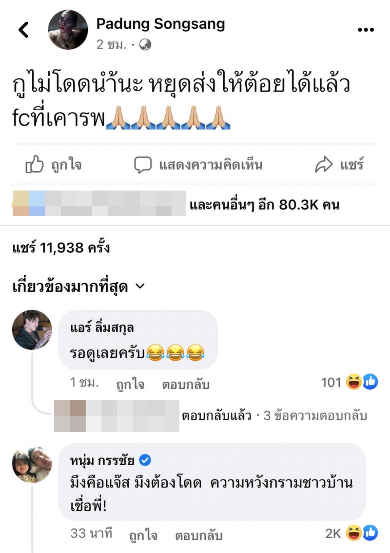 เหล่าบรรดาคนที่ได้เข้ามาดูคลิปดังกล่าว ก็ได้ส่งไปให้ตลกชื่อดังอย่าง แจ๊ส ชวนชื่น ซึ่งได้เคยสร้างตำนานด้วยการคัฟเวอร์เป็น "โตโย่" กับท่าเต้นสตาร์ตรถ จน แจ๊ส ต้องออกมาโพสต์ข้อความเบรกไว้ว่า "กูไม่โดดน้ำนะ หยุดส่งให้ต้อยได้แล้ว fcที่เคารพ" ด้านแฟนๆ ก็ไม่ลดละ เข้ามาคอมเมนต์ในเฟซบุ๊กของ แจ๊ส กันเป็นจำนวนมาก พร้อมกับแซวว่า พูดแบบนี้ เตรียมรอดูได้เลย แม้กระทั่ง หนุ่ม กรรชัย ยังเข้ามาคอมเมนต์ว่า "มึงคือแจ๊ส มึงต้องโดด ความหวังกรามชาวบ้าน เชื่อพี่!".