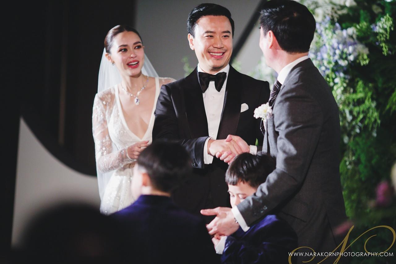 ซึ่งมีคนในครอบครัว ญาติ เพื่อนๆ ในวงการบันเทิงและนอกวงการบันเทิง รวมไปถึงคนสนิทของทั้ง 2 ฝ่ายมาร่วมเป็นสักขีพยานรักกันจำนวนมาก โดยบรรยากาศในงานเต็มไปด้วยความรัก ความอบอุ่น หวาน ซึ้ง และเฮฮาปะปนกันไป