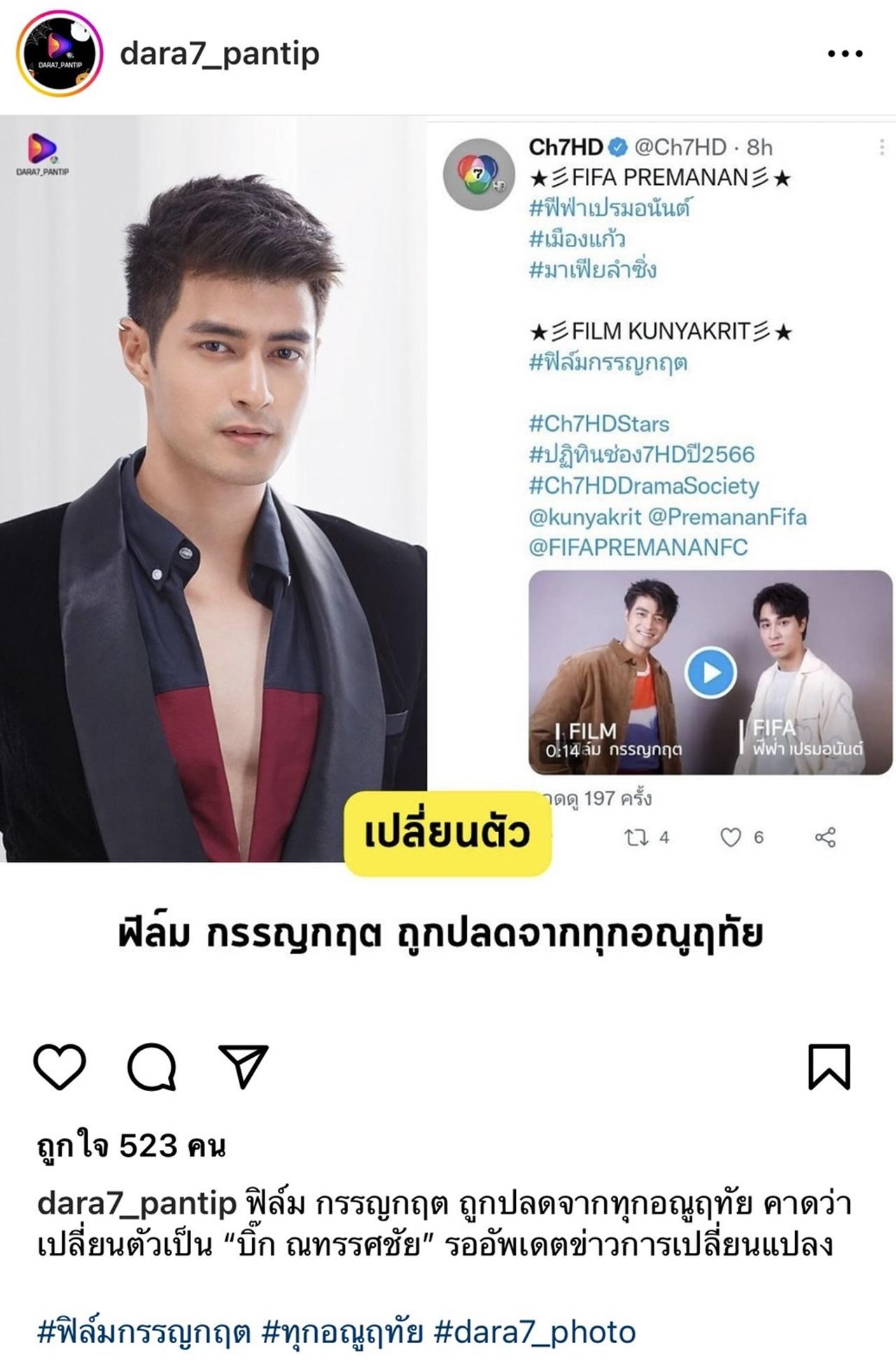 ทำเอาแฟนๆ ถึงกับงงไม่น้อย เมื่อจู่ๆ อินสตาแกรมแอ็กเคานต์ @dara7_pantip ได้ออกมาโพสต์แจ้งข่าวว่า นักแสดงหนุ่ม ฟิล์ม กรรญกฤต ถูกเปลี่ยนตัวจากละครเรื่อง ทุกอณูฤทัย และคาดว่าจะได้ บิ๊ก ณทรรศชัย มาแสดงแทน โดยมีแคปชั่นเขียนเอาไว้ว่า