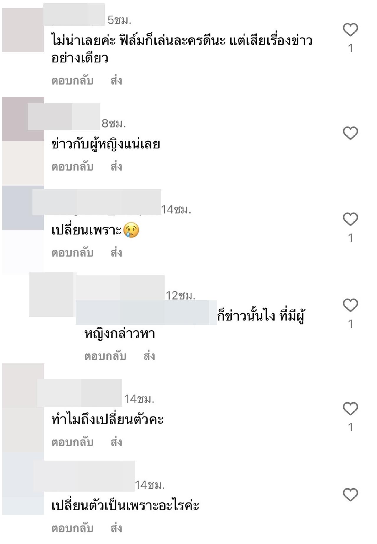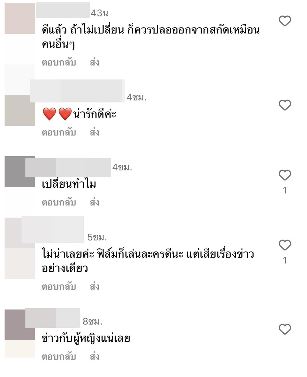 หลังจากที่โพสต์นี้ถูกเผยเเพร่ออกไป ก็มีชาวเน็ตเข้ามาคอมเมนต์มากมาย อาทิ "ดีแล้ว ถ้าไม่เปลี่ยน ก็ควรปลดออกจากสังกัดเหมือนคนอื่นๆ, เปลี่ยนทำไม, ไม่น่าเลยค่ะ ฟิล์มก็เล่นละครดีนะ แต่เสียเรื่องข่าวอย่างเดียว, ข่าวกับผู้หญิงแน่เลย, ทำไมถึงเปลี่ยนตัวคะ, ก็ข่าวนั้นไงที่มีผู้หญิงกล่าวหา"