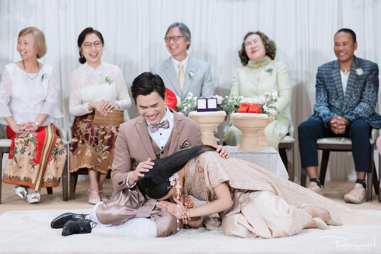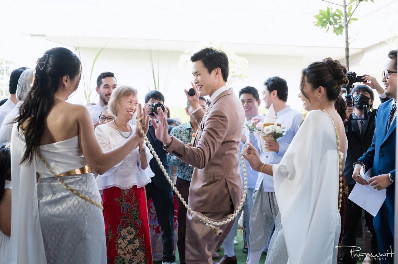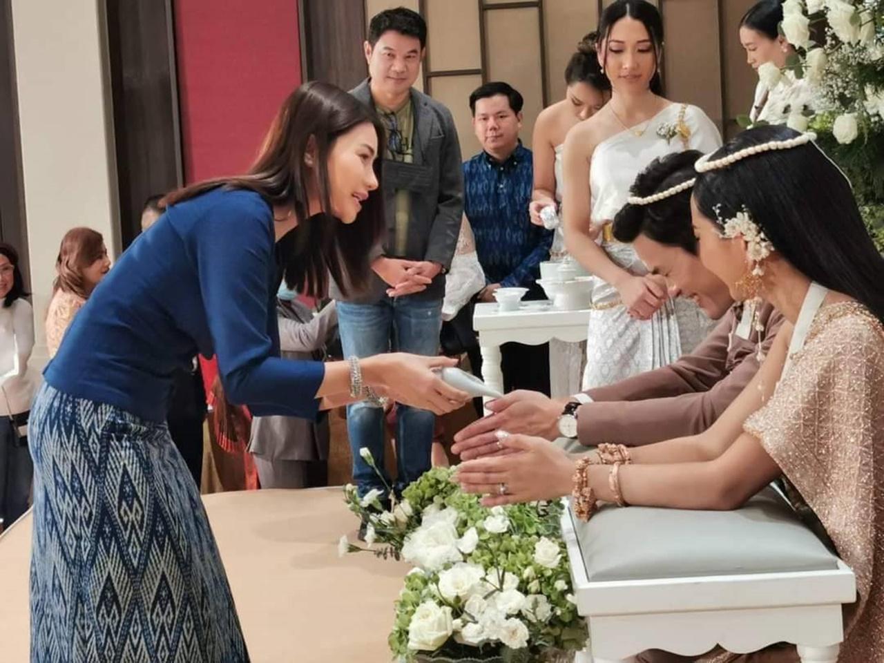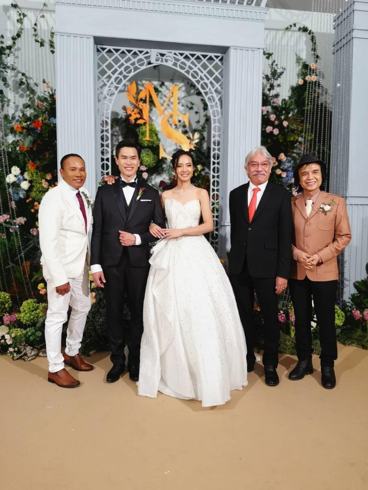 โดยมีญาติผู้ใหญ่ ญาติพี่น้อง คนรู้จักทั้งในและนอกวงการต่างมาร่วมแสดงความยินดีกับเจ้าสาวเจ้าบ่าวมากมายไม่ว่าจะเป็น คุณกริช ทอมมัส ผู้บริหารสังกัดแกรมมี่โกลด์, คุณครูสลา คุณวุฒิ, ลำเพลิน วงศกร, ข้าวทิพย์ ธิดาดิน รวมทั้งทีมผู้จัดละคร สูตรรักแซ่บอีหลี อีกด้วย