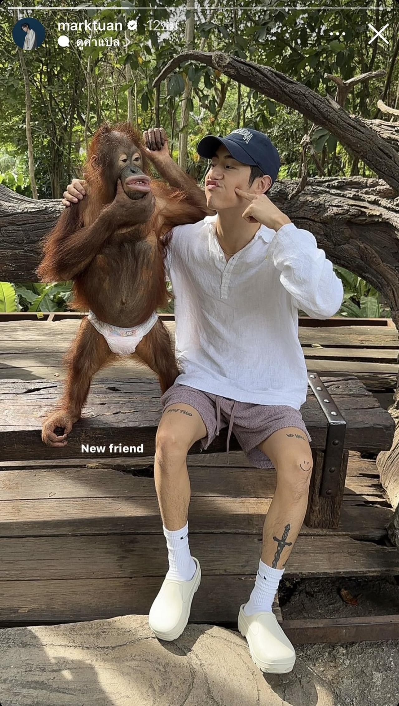 ล่าสุด มาร์ค ต้วน ก็ได้เผยภาพสุดน่ารักในระหว่างที่ไปเที่ยวสวนสัตว์ให้แฟนๆ ได้เห็น กับการถ่ายรูปกับน้องลิง พร้อมเขียนแคปชั่นน่ารักๆ ว่า New friend งานนี้ทำเอาแฟนๆ ชาวไทยถึงแอบอิจฉาเพื่อนใหม่ของหนุ่มมาร์คกันเป็นแถว