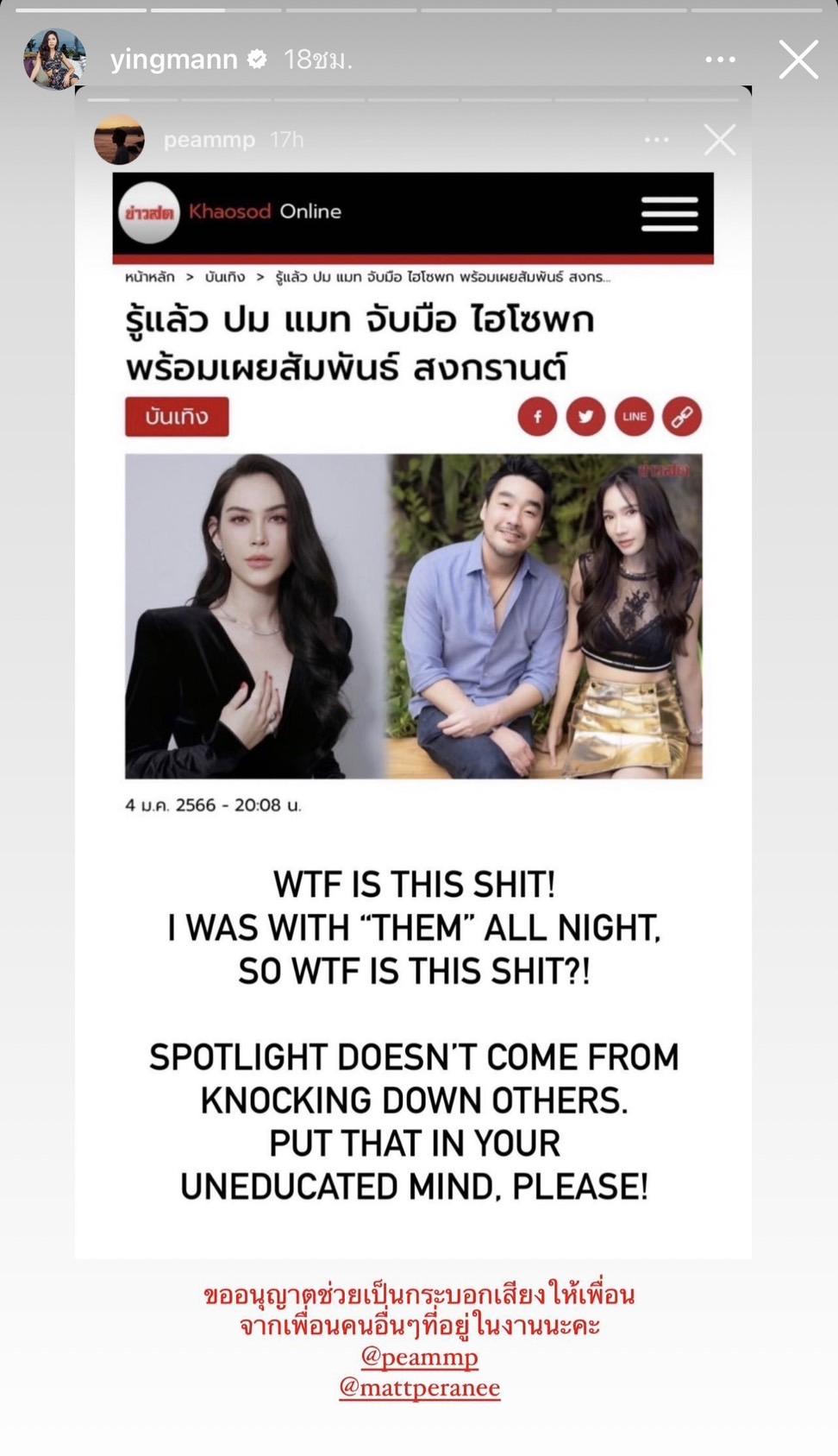ถือเป็นการการันตีความชัวร์ให้กับใครหลายๆ คน สำหรับประเด็นจับมือของนางเอกสาว แมท ภีรนีย์ และ ไฮโซพก ประธานวงศ์ ที่ก่อนหน้านี้ฝ่ายหญิงกำลังถูกโยงเป็นมือที่ 3 ในขณะที่ทุกฝ่ายออกมาเคลียร์ รวมถึง สงกรานต์ เตชะณรงค์ ออกมายืนยันว่าทั้งคู่เป็นเพื่อนกันมานานมากแล้ว ไม่มีอะไรแบบที่ทุกคนคิด