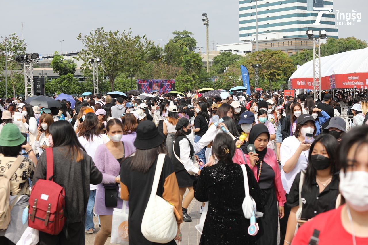 และบรรยากาศปีนี้ก็คึกคักเช่นเคย เพราะแฟนคลับทั้งชาวไทยและต่างชาติ แห่มารอกันอย่างเนืองแน่นพื้นที่ด้านหน้าราชมังคลากีฬาสถาน เตรียมเข้าร่วมงานประกาศรางวัล Golden Disc Awards 2023 ปีที่ 37 ที่จะจัดขึ้นครั้งแรกในประเทศไทย ท่ามกลางสภาพอากาศที่ร้อนไม่แพ้ความสนุกภายในงาน.