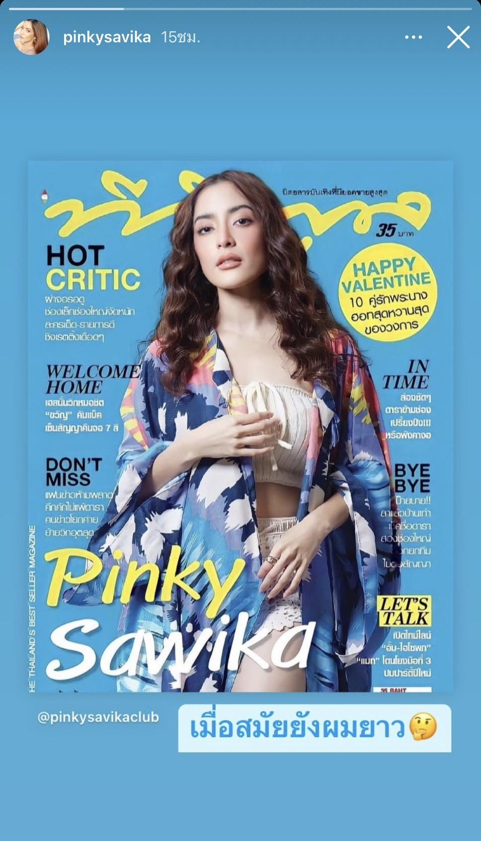 อย่างล่าสุด พิ้งกี้ ได้เคลื่อนไหวโพสต์สตอรี่อินสตาแกรม เป็นภาพปกนิตยสารดัง พร้อมข้อความว่า "เมื่อสมัยยังผมยาว" และติดอีโมจิครุ่นคิด