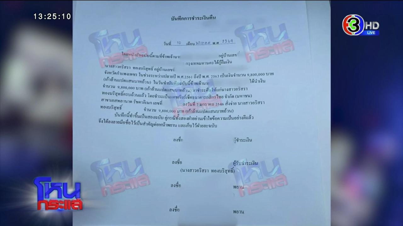 เป็นอีกหนึ่งประเด็นที่น่าสนใจเกี่ยวกับกรณีที่ ดิว อริสรา ทองบริสุทธิ์ เพราะนอกจากจะออกโรงแฉพี่น้อง 4 บ. ทั้งเรื่องเกี่ยวข้องกับเว็บพนัน รวมถึงเรื่องที่อดีตคนรักของดิวทำร้ายร่างกายแล้ว ล่าสุดในรายการ “โหนกระแส” ทางช่อง 3 หนุ่ม กรรชัย กำเนิดพลอย พิธีกรดัง ได้เปิดเผยภาพเอกสารชำระเงินคืน 9.8 ล้านบาท โดยอ้างว่าเป็นฝ่ายชายยืมเงินดิวไป และเซ็นเอกสารชำระเงินดังกล่าวคืนให้กับดิว
