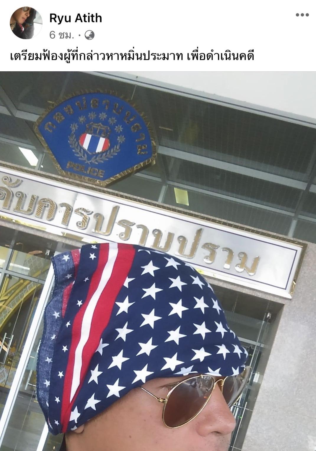 หลังจากที่ อาทิตย์ ริว แชร์โพสต์ดังกล่าวไปไม่นาน เจ้าตัวก็ได้โพสต์รูปตัวเองอยู่หน้ากองปราบปราม และเขียนแคปชั่นว่า "เตรียมฟ้องผู้ที่กล่าวหาหมิ่นประมาท เพื่อดำเนินคดี"