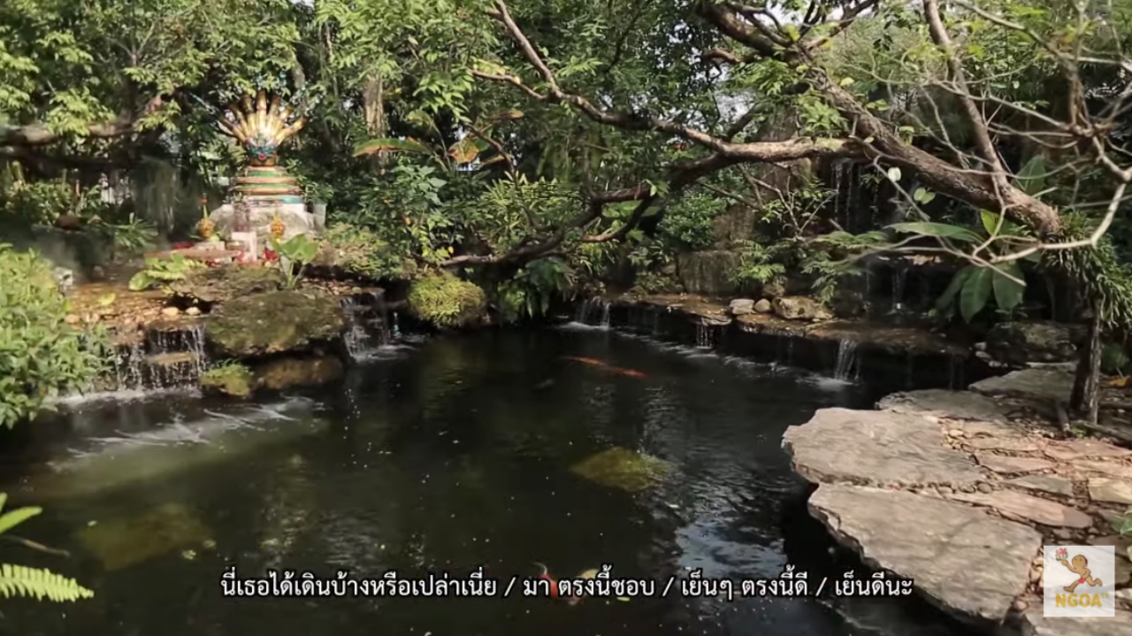 ก่อนจะพาเดินชมบ้านให้ทั่ว และเข้าไปในโซนสวนหย่อมที่ตกแต่งด้วยต้นไม้ใหญ่แสนจะร่มรื่น และมดดำก็เล่าให้ฟังต่อว่า ตอนทำบ้านไม่คุยกับพ่อเลย ก็ให้เขาทำไปเลย ไม่ยุ่ง ถือว่าเป็นบ้านของเขา