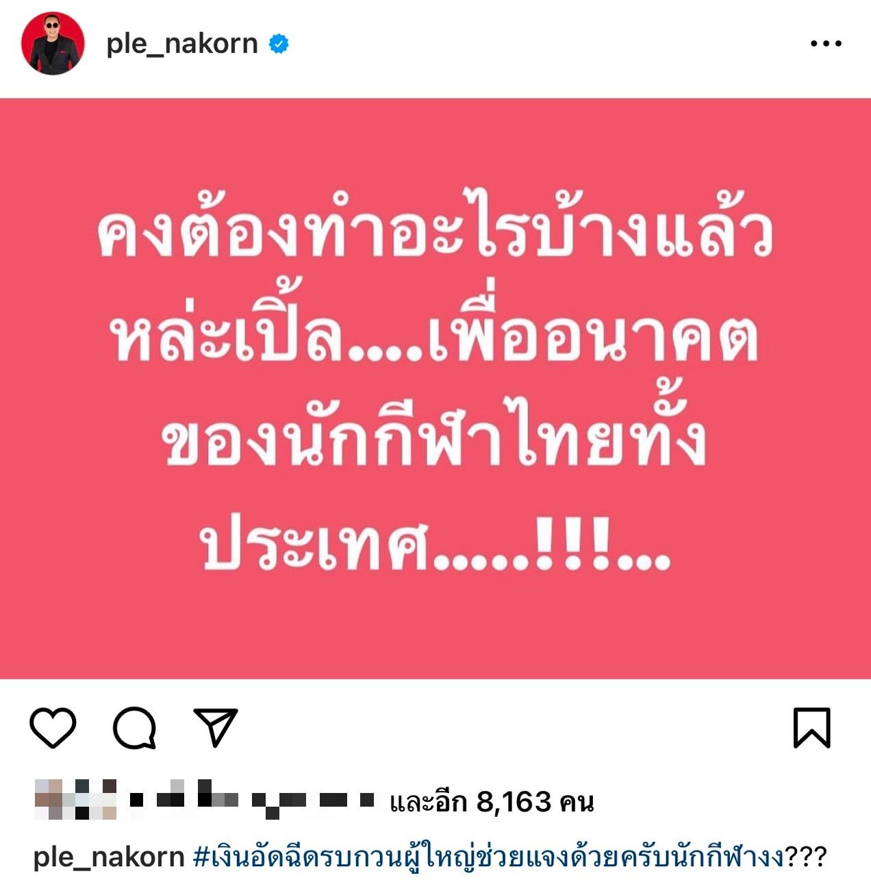 กลายเป็นประเด็นร้อน หลัง เปิ้ล นาคร แชร์โพสต์เกี่ยวกับกฎเกณฑ์ใหม่ในการรับเงินอัดฉีดจากกองทุนพัฒนากีฬาแห่งชาติ ซึ่งทำให้ลูกชาย น้องออก้า รวมถึงนักกีฬาเจ็ตสกีคนอื่นๆ ที่เพิ่งคว้าแชมป์โลกกลับมา ไม่ได้รับเงินสนับสนุนเหมือนเคย