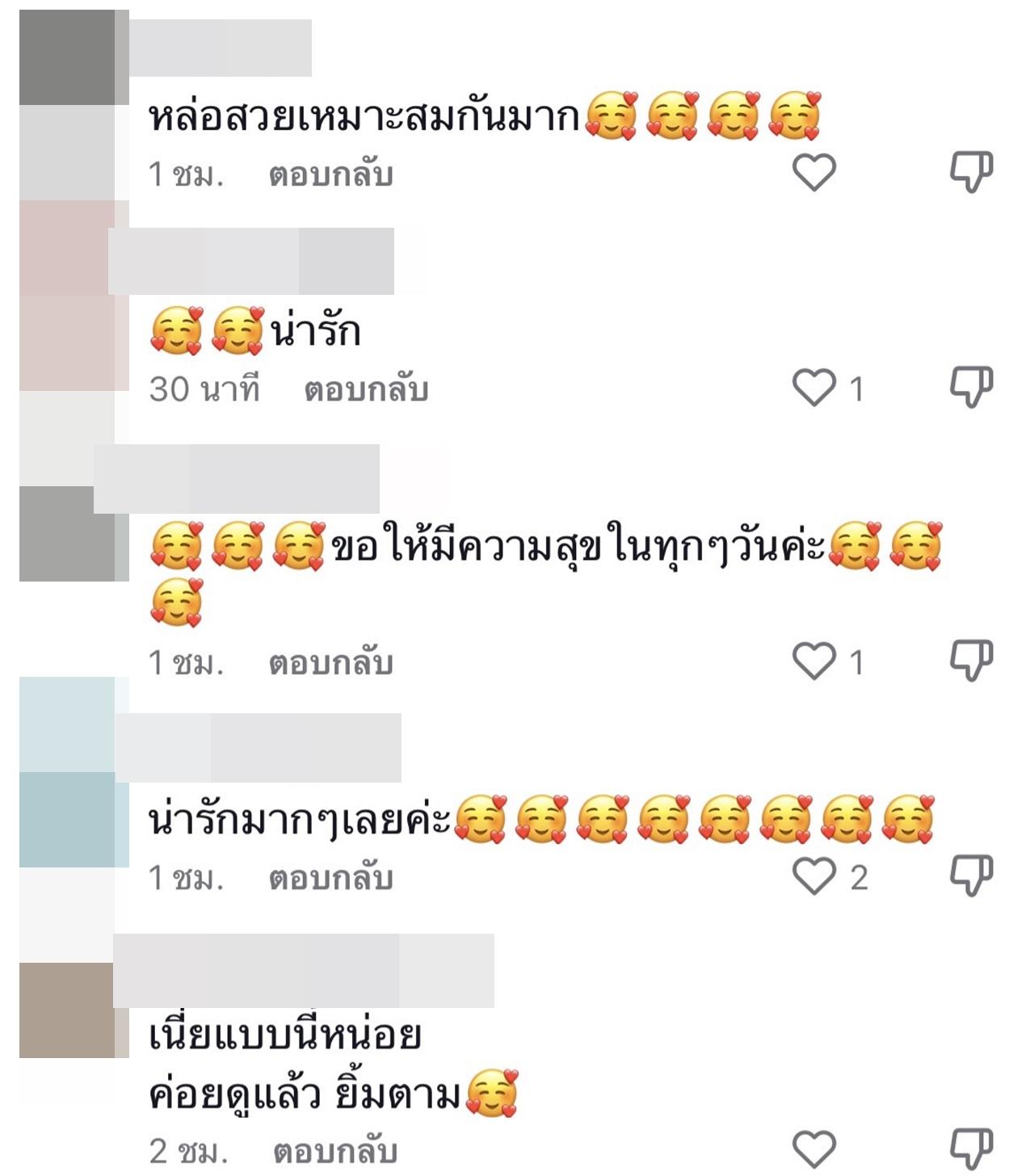 หลังจากที่ ธัญญ่า อาร์สยาม โพสต์คลิปเปิดตัวหนุ่มใหม่ไป ก็มีแฟนๆ เข้ามาคอมเมนต์แสดงความยินดีกับรักครั้งใหม่ของนักร้องสาวอย่างมากมาย อาทิ "เหมาะสมมากคร่า สดใส ดูแล้วยิ้มตาม, เหมาะ หล่อ สวย มีความสุขนะคะ ชอบค่ะ, ขอให้มีความสุขในทุกๆ วันค่ะ, เนี่ยแบบนี้หน่อย ค่อยดูแล้วยิ้มตาม, เหมาะสมกันมากกก สวยหล่อ"