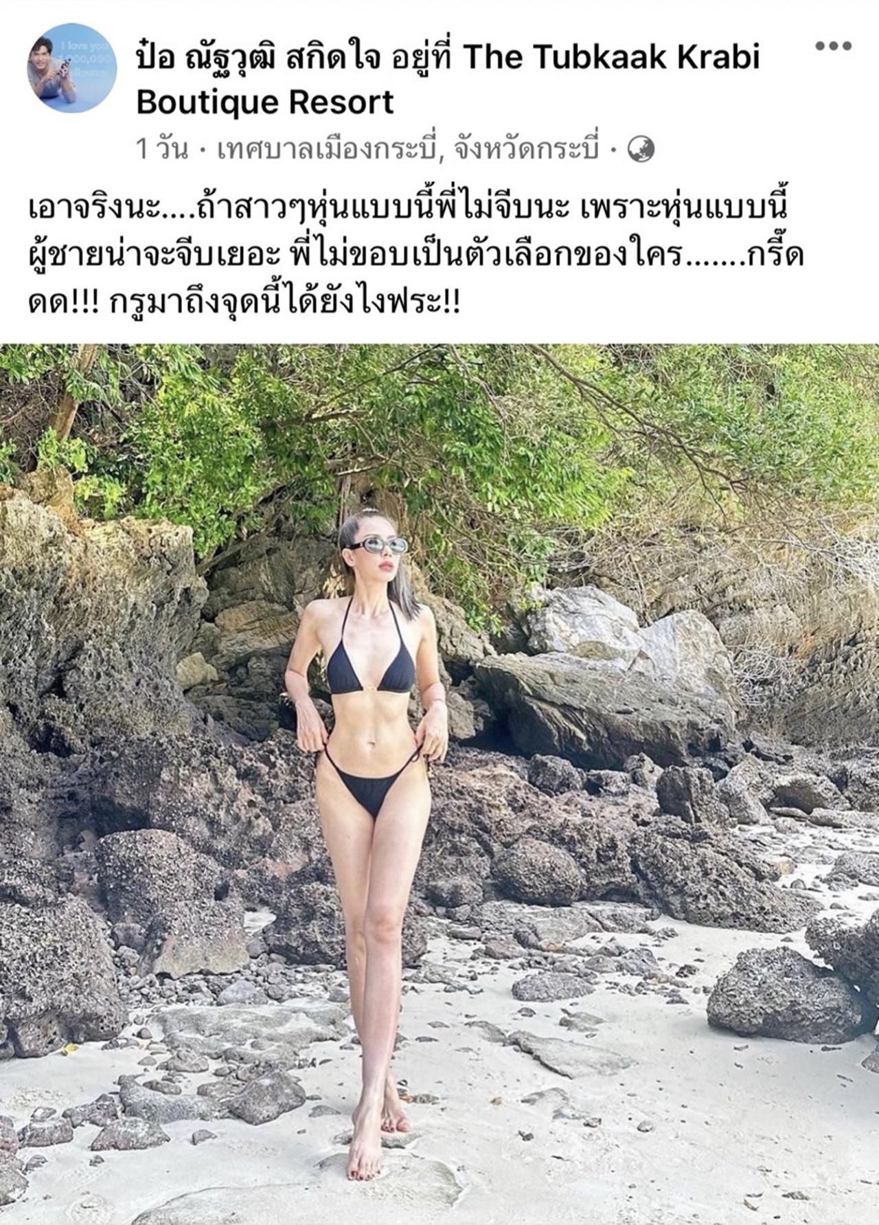 ล่าสุด เอ๋ ก็ได้โพสต์ภาพตัวเองสวมใส่ชุดว่ายน้ำทูพีซสีดำตัวจิ๋วโชว์ซิกซ์แพ็กแน่นๆ โพสท่าอยู่ที่ริมทะเล ภาพนี้บอกเลยว่าทำหลายคนฮือฮาอย่างมาก เพราะ เอ๋ สวยและเซ็กซี่มากจริงๆ