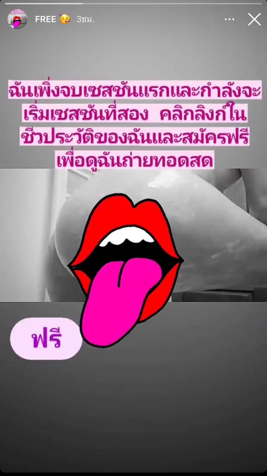 พร้อมระบุข้อความว่า "สวัสดีทุกคนฉันเพิ่งสร้างบัญชีที่สองเพื่อโปรโมตหน้า เนื้อหาพิเศษของฉัน ดังนั้นฉันจึงให้การเข้าถึงฟรี 1 เดือนสำหรับสมาชิกใหม่ที่เข้าร่วมกับฉันเพื่อเพิ่มคะแนนของฉัน" โดยแต่ละรูปก็มีการเปลือยกาย อนาจาร ซึ่งไม่สามารถทราบได้เลยว่า ลิงก์นั้นคือลิงก์อะไร บุคคลนั้นมีเจตนาใดแอบแฝง แล้วใครจะหลงเชื่อตกเป็นเหยื่อบ้าง