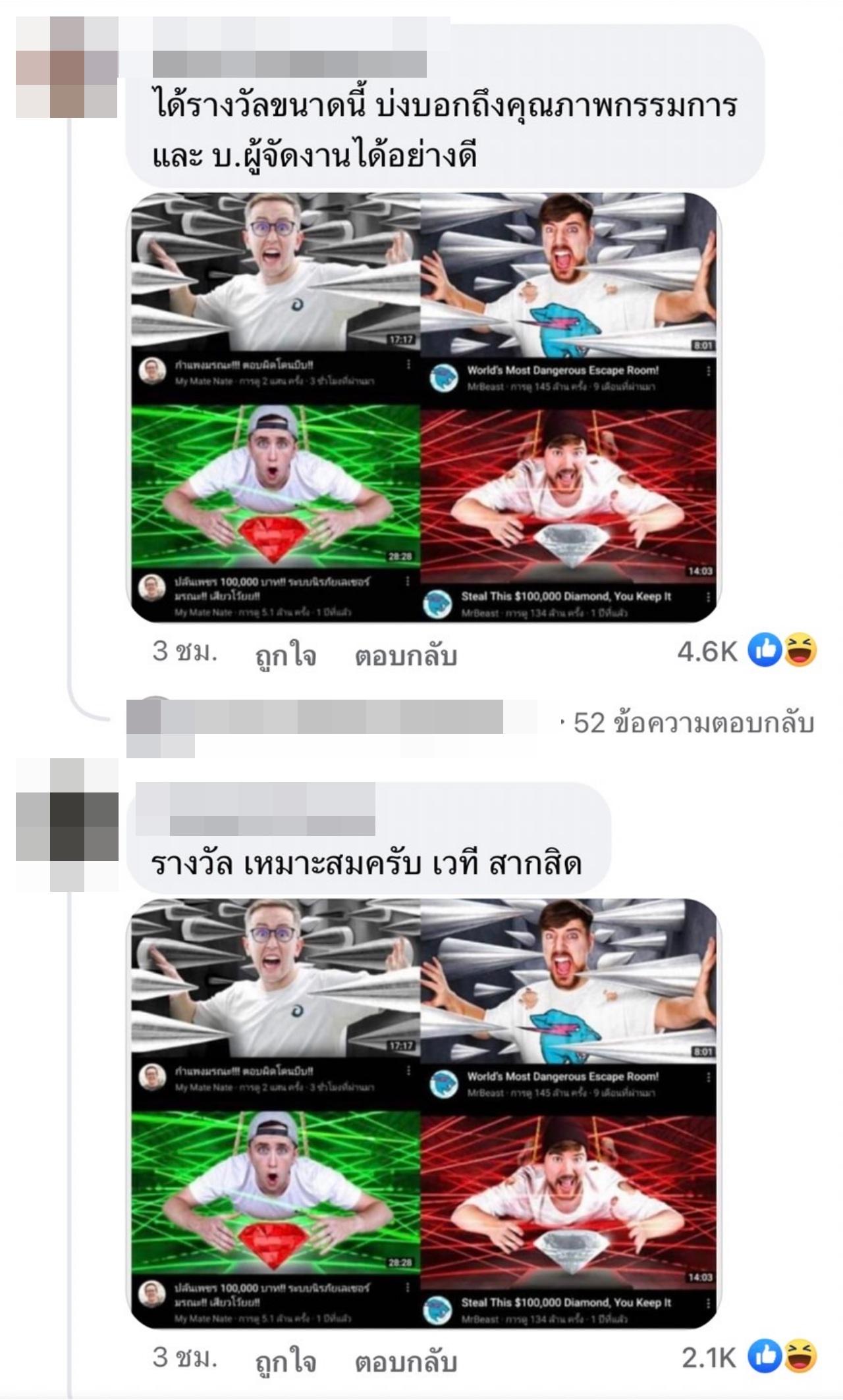 และหลังจากที่ My Mate Nate ได้รับรางวัลดังกล่าวไปครอง หลายคนที่เห็นรูปภาพดังกล่าว ต่างเข้ามาแสดงความคิดเห็นในมุมกลับกัน ซึ่งทุกคนต่างก็มองว่า My Mate Nate ไม่เหมาะที่จะได้รางวัลนี้ และต่างพากันวิจารณ์ว่าช่องดังกล่าวได้ก๊อบปี้คอนเทนต์ครีเอเตอร์ของช่องชาวต่างชาติ ที่ชื่อว่า มิสเตอร์บีสต์ นอกจากนี้ยังบอกอีกว่า ช่องของ Ohana กับ SPD น่าจะได้รางวัลนี้มากกว่า ไม่ค่อยจะยุติธรรมเท่าไรเลย.
