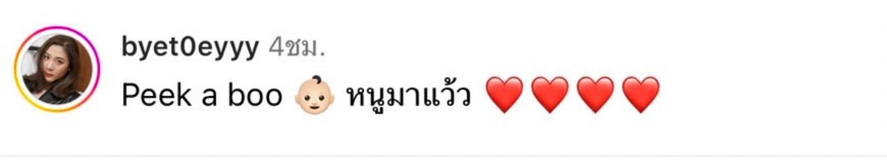 ล่าสุด ใบเตย ก็ได้ออกมาโพสต์คลิปอัลตราซาวนด์ ดูพัฒนาการลูกน้อยในท้อง พร้อมเขียนแคปชั่นว่า "Peek a boo หนูมาแว้ว" ท่ามกลางเพื่อนพี่น้องในวงการบันเทิง รวมถึงคนที่ติดตามต่างเข้ามาคอมเมนต์ร่วมแสดงความยินดีกันเป็นจำนวนมาก.