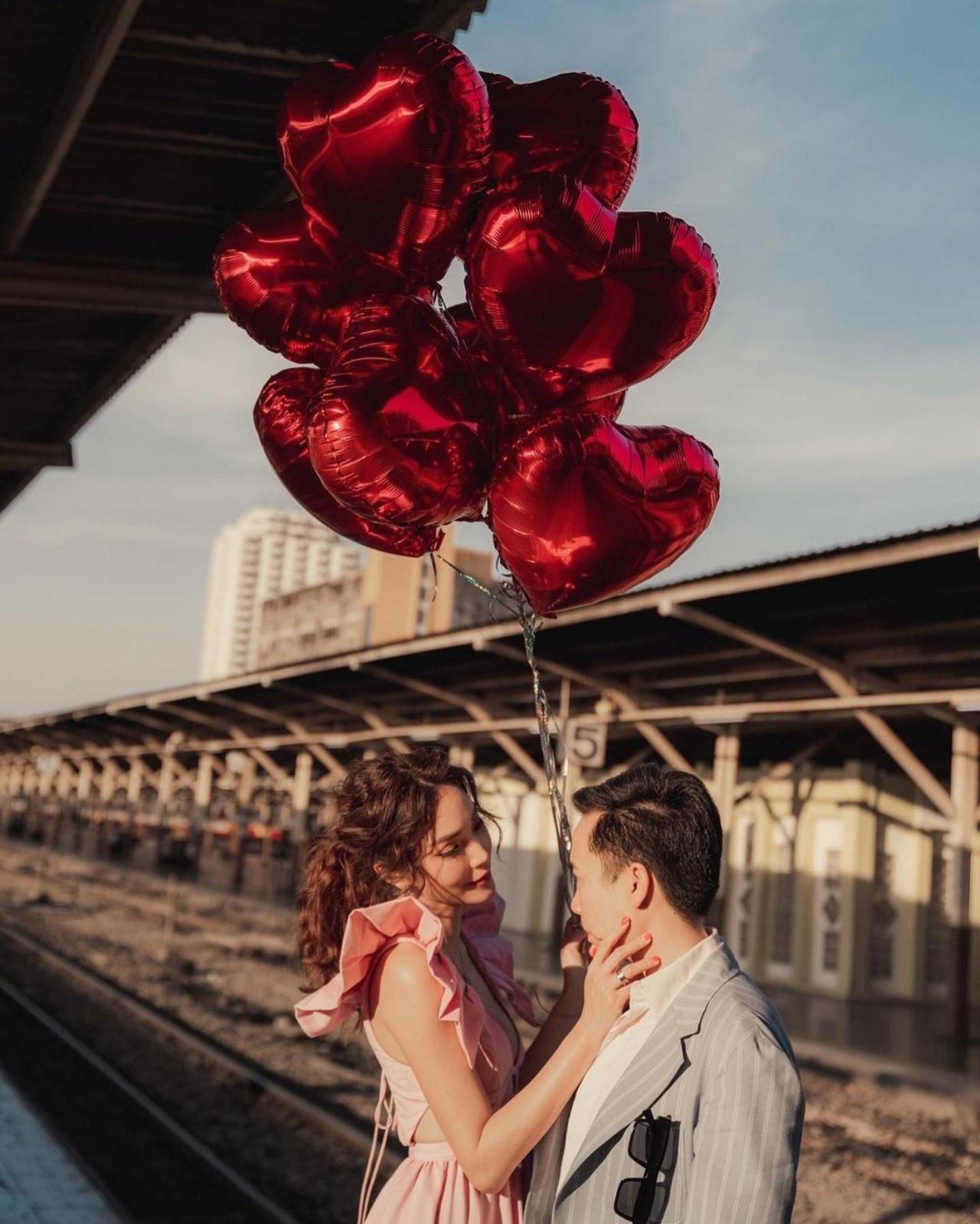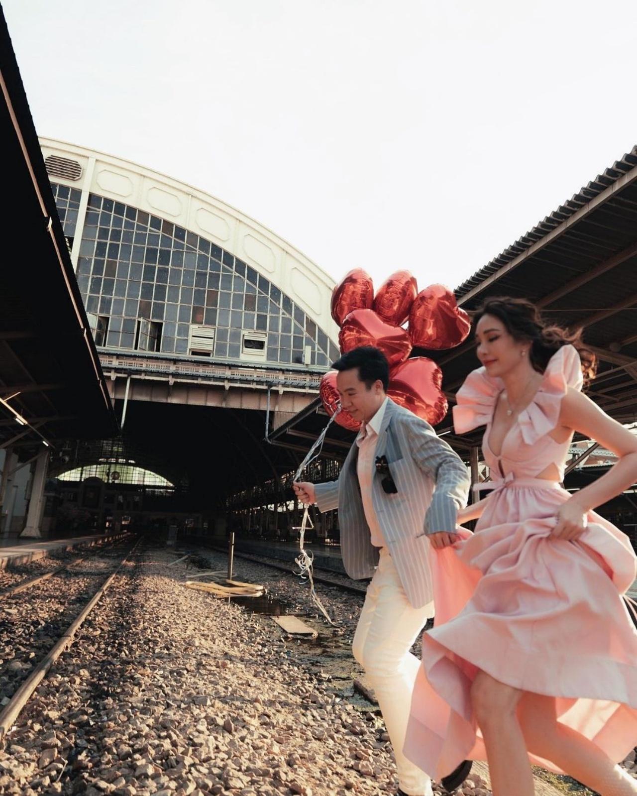 เขาก็โทรสั่งลูกโป่งกันมา ช่างภาพบอกให้วิ่งตัดทางรถไฟ ภาพก็เลยเหมือนที่ออกมาให้เห็นกัน เอาเป็นว่าถ้าเป็นพรีเวดดิ้งเมย์ไม่ถ่ายกันธรรมดาแน่นอน ถามว่ามีแพลนหรือยัง ไม่มีหรอก แต่ว่าเราคบกันก็คุยกันอยู่เรื่อยๆ ถ้ามีก็จะบอกนะคะ แต่ยังไม่เร็วๆ นี้ ขอทำงานก่อน ไม่รีบ มันเลยจุดนั้นมานานแล้ว ไม่ต้องรีบแล้ว เอาช้าแต่ชัวร์ดีกว่า”.