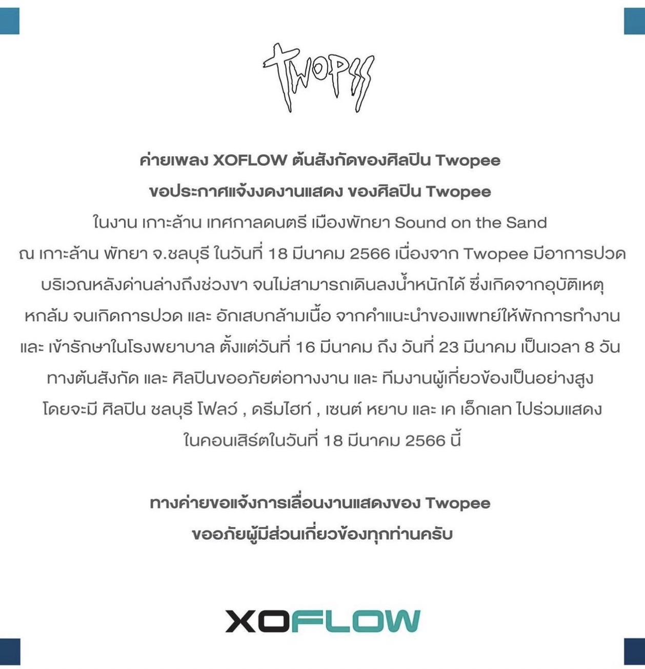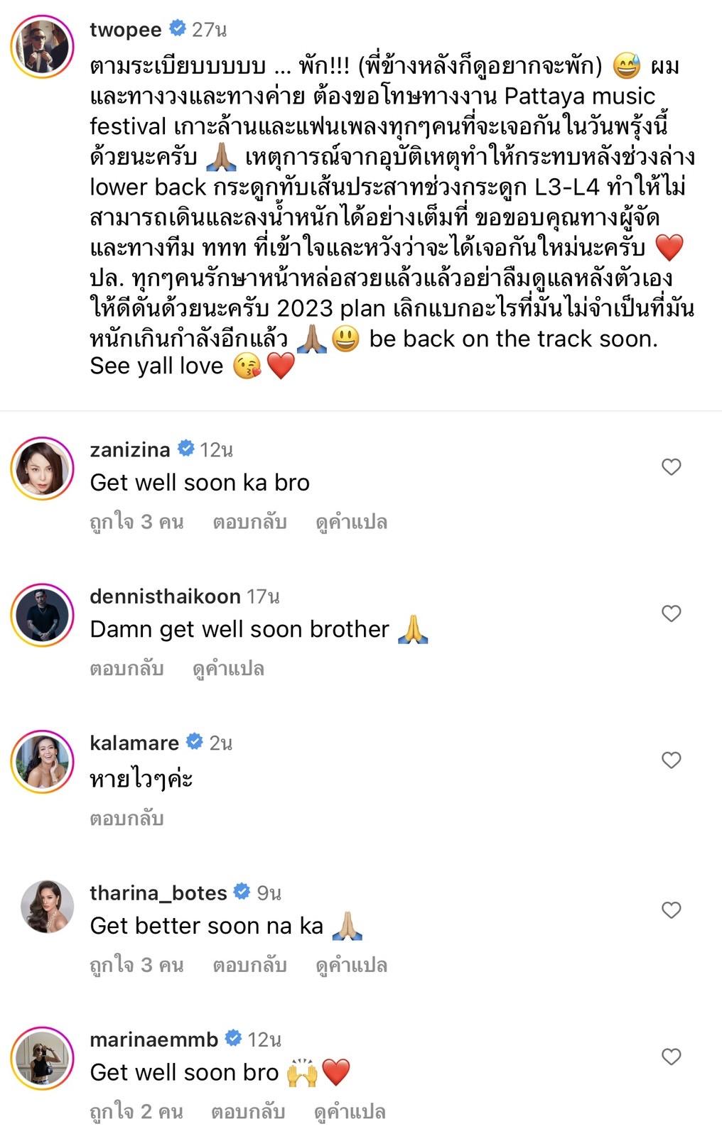 ทำเอาแฟนคลับถึงกับส่งกำลังใจให้นักร้องหนุ่ม โต้ง ทูพี กันเป็นจำนวนมาก หลังจากที่ล่าสุด (17 มีนาคม 2566) เจ้าตัวได้ออกมาโพสต์ภาพเข้าโรงพยาบาล พร้อมแจ้งยกเลิกตารางงานกะทันหัน
