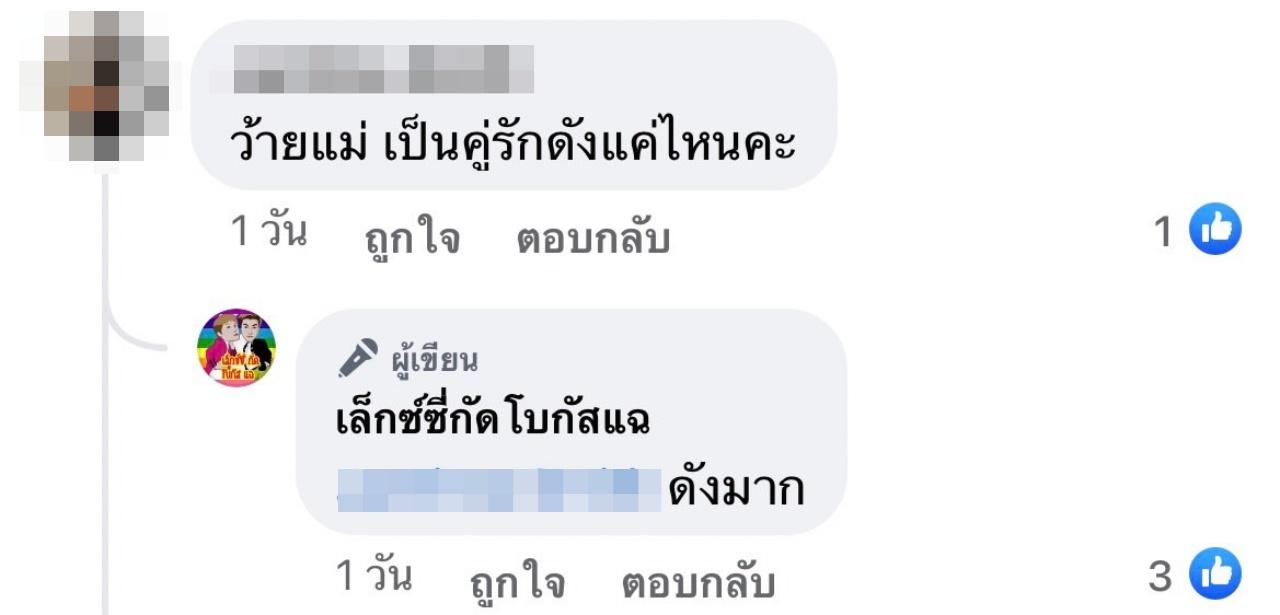 งานนี้ก็มีชาวเน็ตคอมเมนต์ทายกันมากมายว่าเป็นคู่รักดาราคู่ไหนบ้าง และมีคอมเมนต์หนึ่งถามว่า "ว้ายแม่ เป็นคู่รักดังแค่ไหนคะ" ซึ่งเพจก็ได้ตอบกลับว่า "ดังมาก"