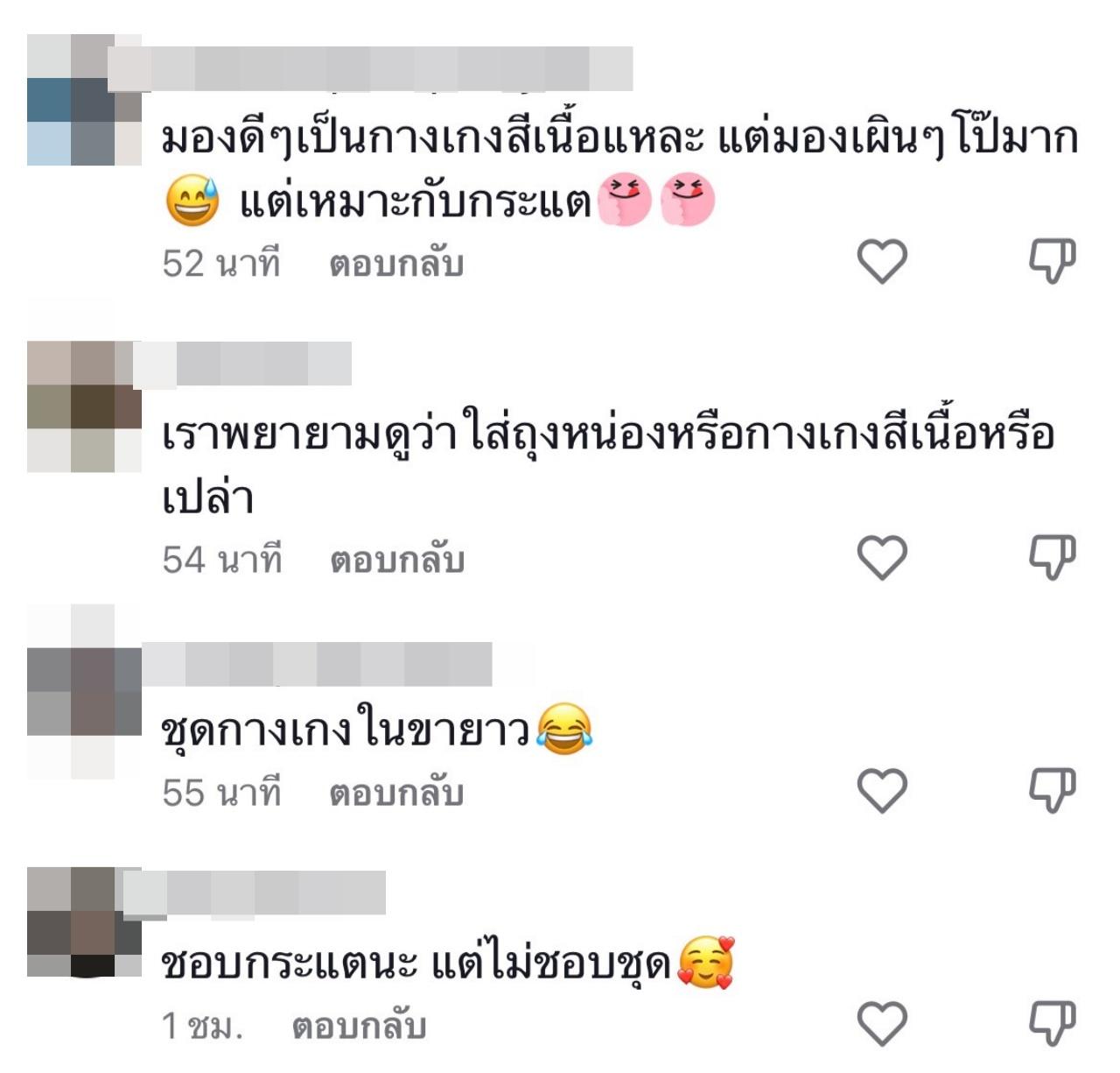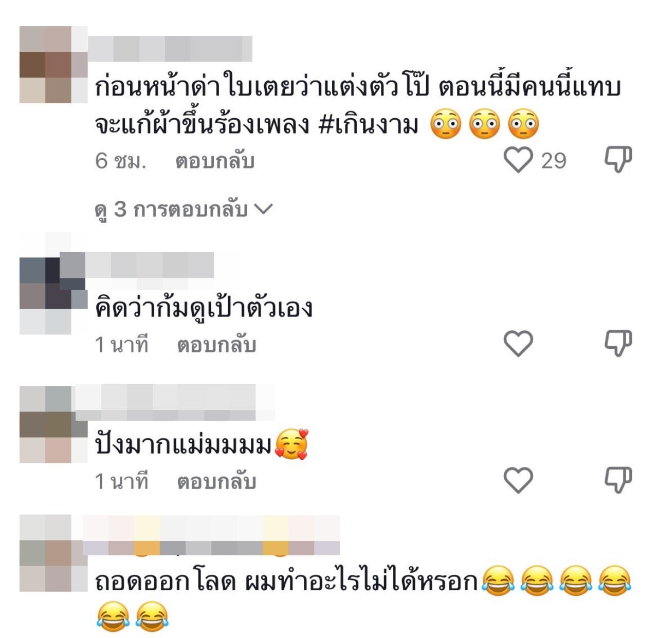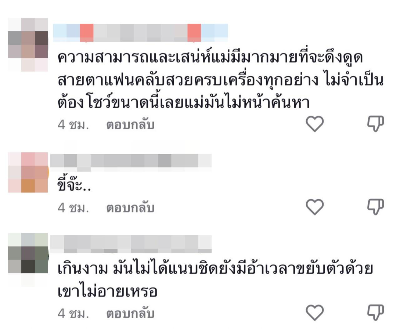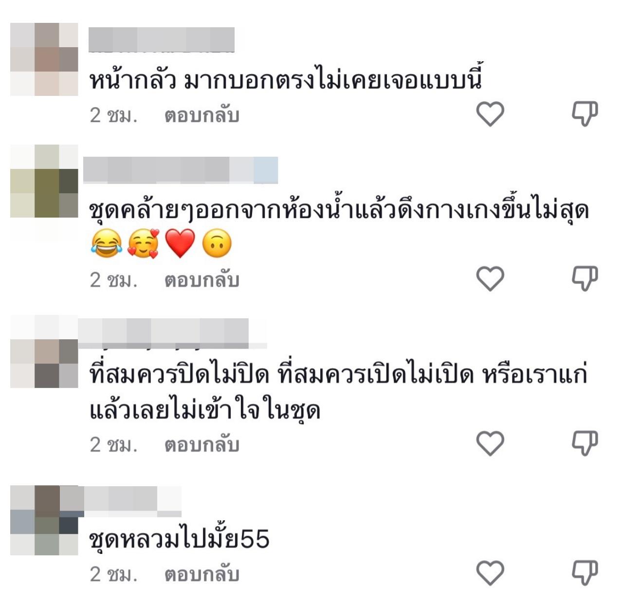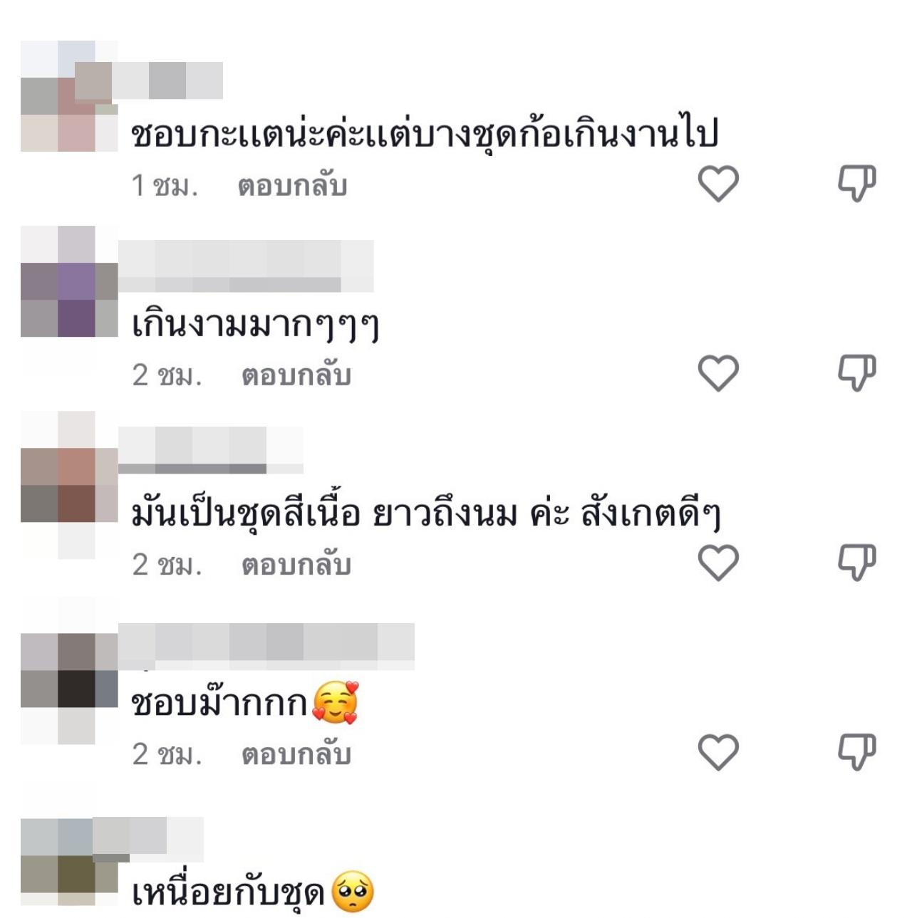 หลังจากที่ชาวเน็ตเห็นคลิปดังกล่าว ก็เข้ามาคอมเมนต์แสดงความคิดเห็นกันออกเป็น 2 ฝ่าย ทั้งคนที่มองว่าชุดนี้สวยแซ่บ เหมาะกับนักร้องสาวเป็นอย่างดี เพราะมีรูปร่างสวยงาม ใส่อะไรก็สวย และชุดดังกล่าวก็เซฟมาเป็นอย่างดี ไม่ได้โป๊แบบที่ชาวเน็ตเข้าใจแต่อย่างใด