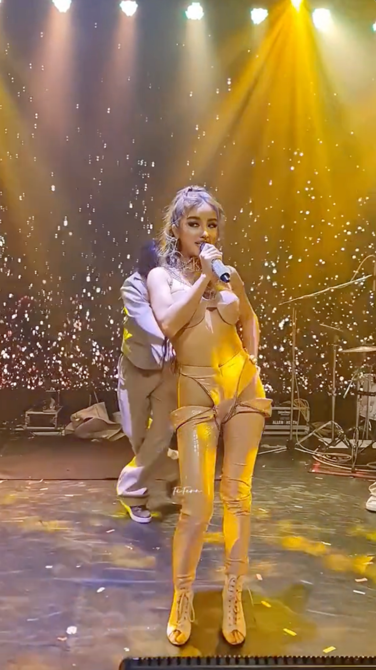 โดยคลิปล่าสุด ที่ผู้จัดของการนักร้องสาวได้โพสต์ลงในติ๊กต่อก กับชุดสีนู้ดที่รูดซิปขาออกได้ และจะกลายเป็นกางเกงขาสั้นเว้าสูงมาก ส่วนด้านหลังก็อวดบั้นท้ายเด้งกลมได้รูป