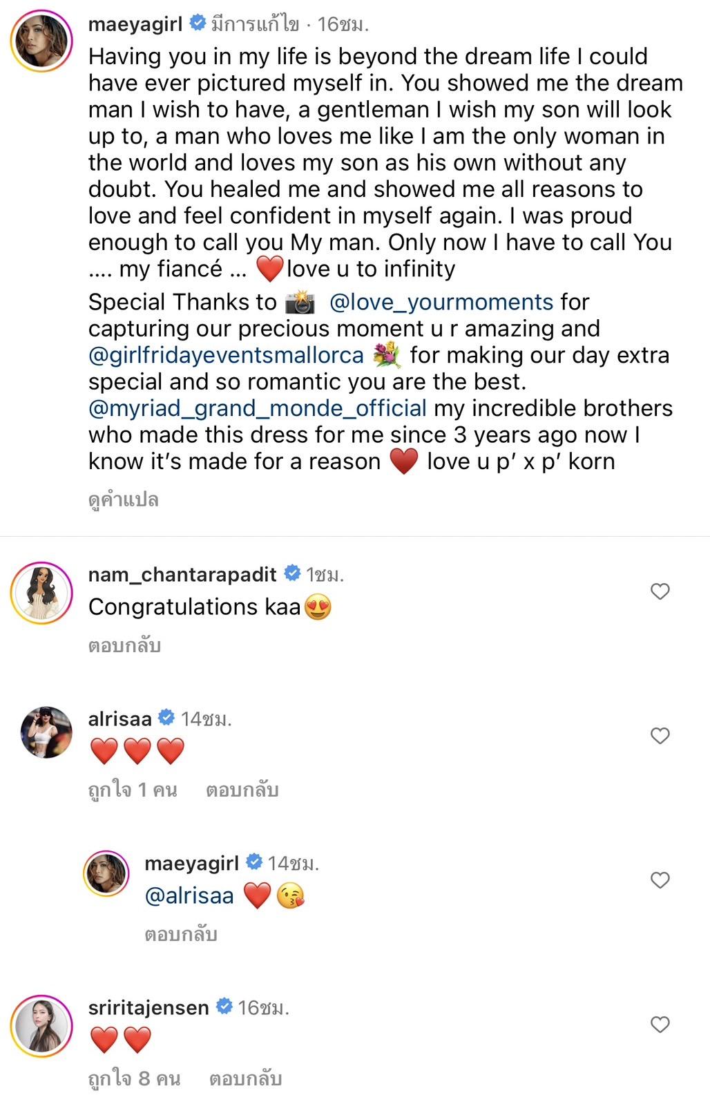 คู่หมั้นของฉัน ...รักคุณจนไม่มีที่สิ้นสุด ขอบคุณเป็นพิเศษจากช่วงเวลาอันมีค่าของเรา u r amazing and @love_yourmoments สำหรับการบันทึก @girlfridayeventsmallorca สำหรับทำให้วันของเราพิเศษและโรแมนติกมาก คุณดีที่สุด @myriad_grand_monde_official พี่ชายที่น่าทึ่งของฉันที่ทำชุดนี้ให้ฉันตั้งแต่ 3 ปีที่แล้ว ตอนนี้ฉันรู้ว่ามันทำด้วยเหตุผลรักคุณ p' x p' korn".