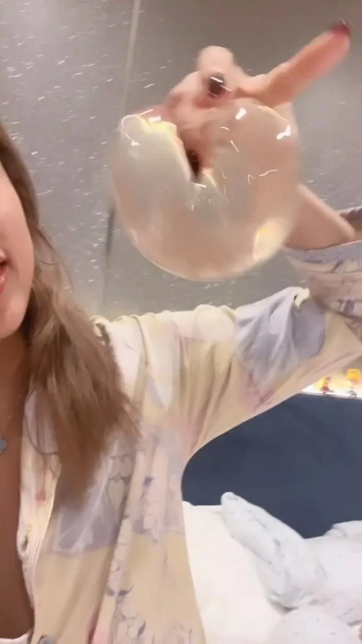 ล่าสุด อุ้ม ลักขณา เจอซิลิโคนหน้าอกเลยหยิบขึ้นมาดู ก่อนจะลองทาบกับหน้าอกตัวเองและหัวเราะ ซึ่งจะเห็นได้ว่าซิลิโคนหน้าอกที่เคยใส่ใหญ่มากจริงๆ ด้าน น้องดิสนีย์ ลูกสาว ที่เห็นคุณแม่ถือซิลิโคนหน้าอกก็ขอจับด้วย งานนี้คุณแม่เลยอัดคลิปและโพสต์ลงไอจีสตอรี่