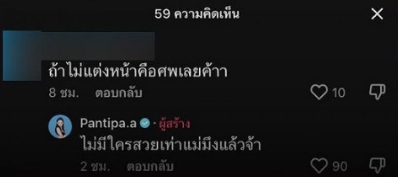 และล่าสุด ปุ้มปุ้ย ก็จัดการฟาดกลับชาวเน็ตแบบเจ็บๆ หลังจากที่เธอนั้นโชว์หน้าสดแบบไร้เครื่องสำอางลงในติ๊กต่อก และถูกชาวเน็ตมาคอมเมนต์แรงว่า "ถ้าไม่แต่งหน้าคือศพเลยค่าา" งานนี้ ปุ้มปุ้ย เลยตอบกลับว่า "ไม่มีใครสวยเท่าแม่มึงแล้วจ้า" ตอบกลับแบบแรงมาแรงกลับไม่โกง.