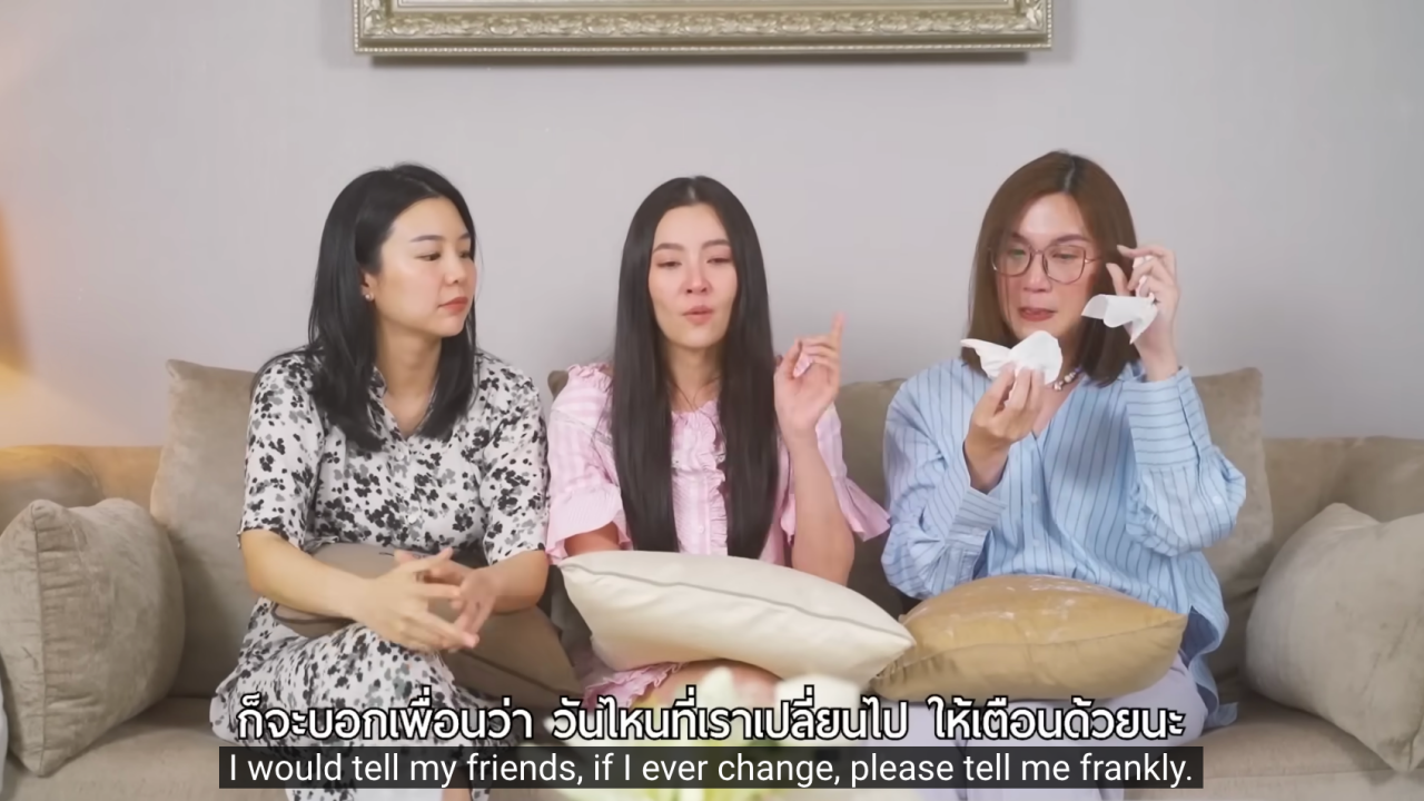 ก่อนที่ทั้ง 3 สาวจะกอดกันร้องไห้ เพราะซาบซึ้งไปกับมิตรภาพความรักของเพื่อนที่คบหา และอยู่เคียงข้างกันในทุกช่วงชีวิตของกันและกันอย่างเข้าอกเข้าใจ.