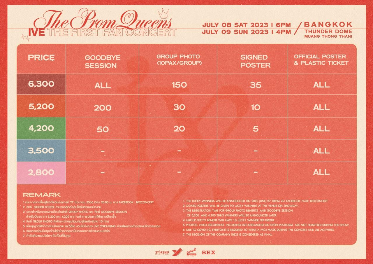 “DIVE” (ชื่อกลุ่มแฟนคลับ) ชาวไทยเตรียมตัวให้พร้อม และมาฟินไปพร้อมกันในงาน “IVE THE FIRST FAN CONCERT <The Prom Queens> IN BANGKOK” โดยงานนี้ได้ “BEX” (เบ็ก) บริษัทอีเวนต์ออกาไนเซอร์ในเครือเวิร์คพอยท์กรุ๊ปเป็นผู้จัดงาน ร่วมกับ “YJ PARTNERS” (วายเจ พาร์ทเนอร์ส), “PROUD2” (พราวด์ทู) และ “Starship Entertainment” (สตาร์ชิป เอนเตอร์เทนเมนต์) ที่เคยสร้างความประทับใจให้กับแฟนๆ มาแล้วในหลายคอนเสิร์ต