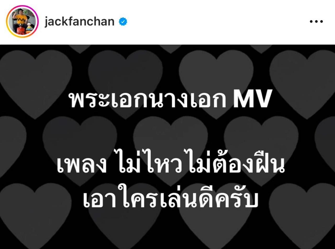 ซึ่ง แจ็ค ได้โพสต์ข้อความลงในอินสตาแกรมของตัวเองเพื่อถามความคิดเห็นจากแฟนๆ ของตัวเองว่า "พระเอกนางเอก MV เพลงไม่ไหวอย่าฝืน เอาใครเล่นดีครับ"