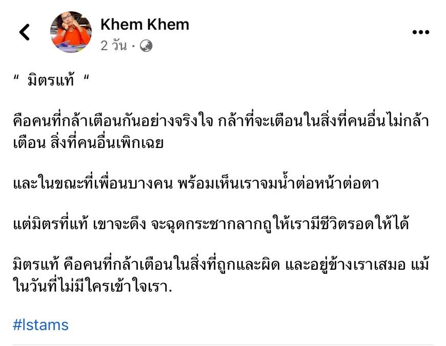 แต่มิตรที่แท้ เขาจะดึง จะฉุดกระชากลากถูให้เรามีชีวิตรอดให้ได้มิตรแท้ คือคนที่กล้าเตือนในสิ่งที่ถูกและผิด และอยู่ข้างเราเสมอ แม้ในวันที่ไม่มีใครเข้าใจเรา. #lstams..."