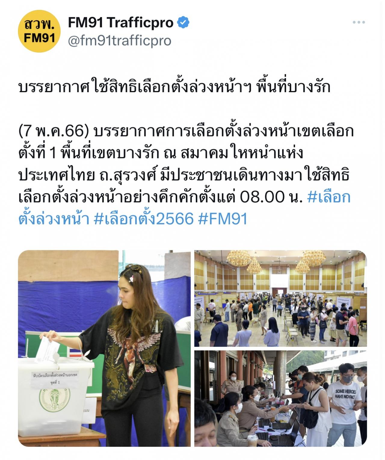 หลายหน่วยเลือกตั้งทั่วกรุงเทพฯ ประชาชนทยอยออกมาใช้สิทธิ เลือกตั้งล่วงหน้า กันอย่างคึกคัก รวมทั้งนางเอกซุป'ตาร์สาว ชมพู่ อารยา ที่ตั้งใจเดินทางออกจากบ้านตั้งแต่เช้า เพื่อไปใช้สิทธิเลือกตั้งล่วงหน้า ที่เขตบางรัก กรุงเทพมหานคร