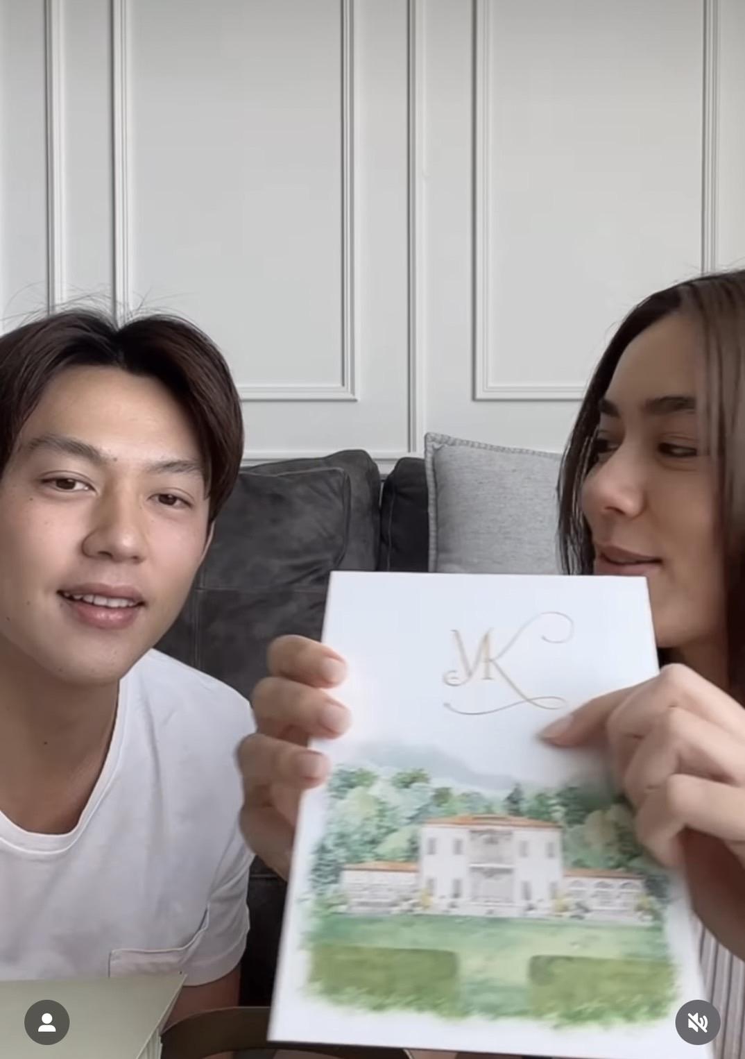 โดยโพสต์ดังกล่าวของ หมาก-คิมเบอร์ลี่ เป็นคลิปในอินสตาแกรม พร้อมกับระบุแคปชั่นไว้ว่า "Revealing our wedding invitation card for Lake Como!!! Thanks to the legend @miidear_invitations เหมือนเอาภาพในหัวเราออกมาเลย ถูกใจที่สุดเลยครับ/ค่ะ อีก4เดือน!!! ตื่นเต้นมากๆเลยยยยยย".