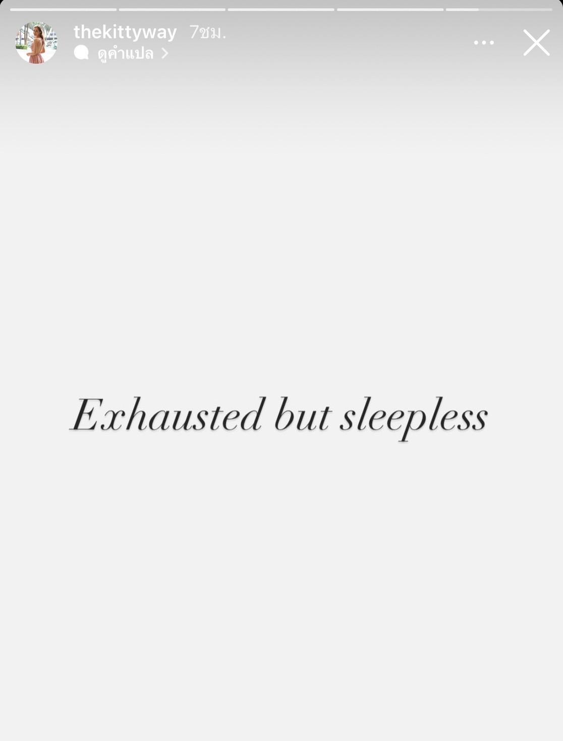 และยังลงไอจีสตอรี่อีกว่า "Exhausted but sleepless" ทางบันเทิงไทยรัฐออนไลน์ ขอเป็นอีกหนึ่งกำลังใจ ขอให้พระเอกหนุ่ม เอส กันตพงศ์ หายป่วยไวๆ และกลับมาแข็งแรงด้วยนะคะ.