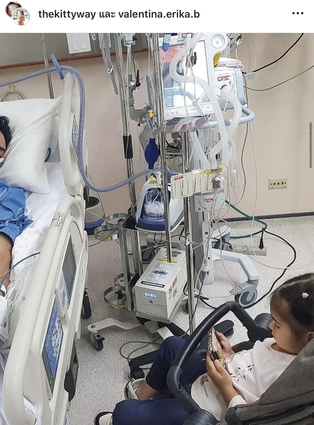 ล่าสุด ภรรยาหนุ่ม เอส กันตพงศ์ ได้โพสต์อินสตาแกรมส่วนตัว เผยภาพที่ลูกสาวนั่งอยู่เคียงข้างเตียงคุณพ่อไม่ห่าง พร้อมกับระบุแคปชั่นว่า "Always by your side! No matter if exhausted, tired or even bored"